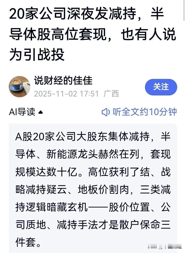 【A股今天】大股东减持,可不是闹着玩的!资本是嗜血的,也是逐利的!如果能够实现持股利润的集中兑现,道德面前就基本荡然无存了! 前那些亏损批量上市的新股,流通股份仅10%,利用新股区别化,特殊化的上市交易规则,利益高开维持,那些持有成本只有一元,两元甚至几毛钱的大股东持股,未来会怎样? 规则始终还是那样,尽管刘继鹏大呼小叫的建议规范大股东减持行为,比如挂钩分红额才能减值,但谁听啊?