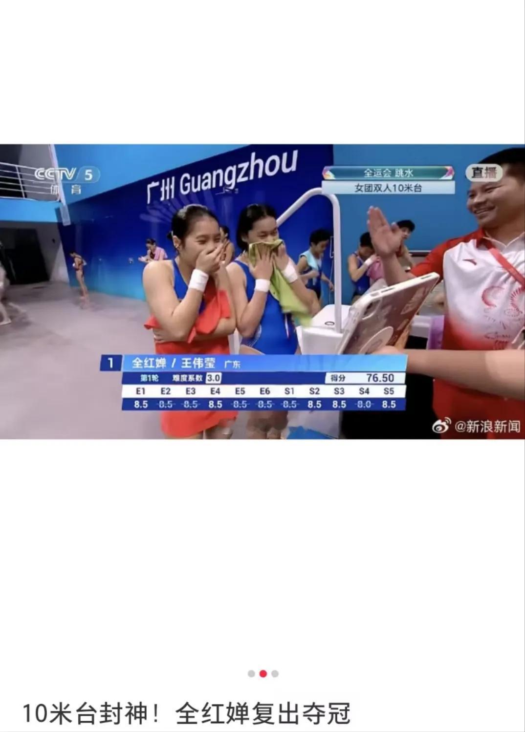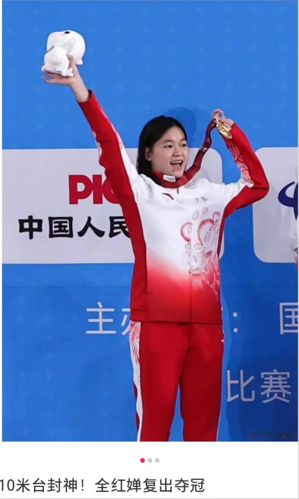 全红婵虽败犹荣 全红婵退赛, 最后悔的人不是观众,而是 那个咬着牙放弃单人10米台的自己。 五个月没比赛,伤病和长身体的坎儿不好过,每天称重按克算,饮食训练卡得严,为了全运会咬牙坚持,最后却只能退掉最受关注的单人项目,换谁心里不憋屈。 搭档才三周,每天多练四小时,动作细抠到毫秒级同步,跳台上水花还是那么小,观众举着海报喊加油,她带着广东队拿下女团冠军,微博发“我真棒”,这哪是输,明明是拼尽全力的赢。 你说她放弃单人项目是遗憾?可她用双人金牌证明,就算暂时绕点路,全红婵还是那个能站上最高领奖台的姑娘,这算败吗?全红婵 婵红婵