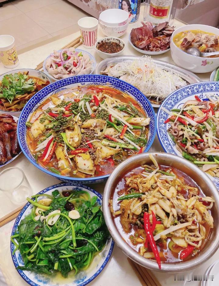 左边那桌菜比较清淡,右边那桌菜辣椒比较多,这两桌菜,你想吃哪个哪一桌?