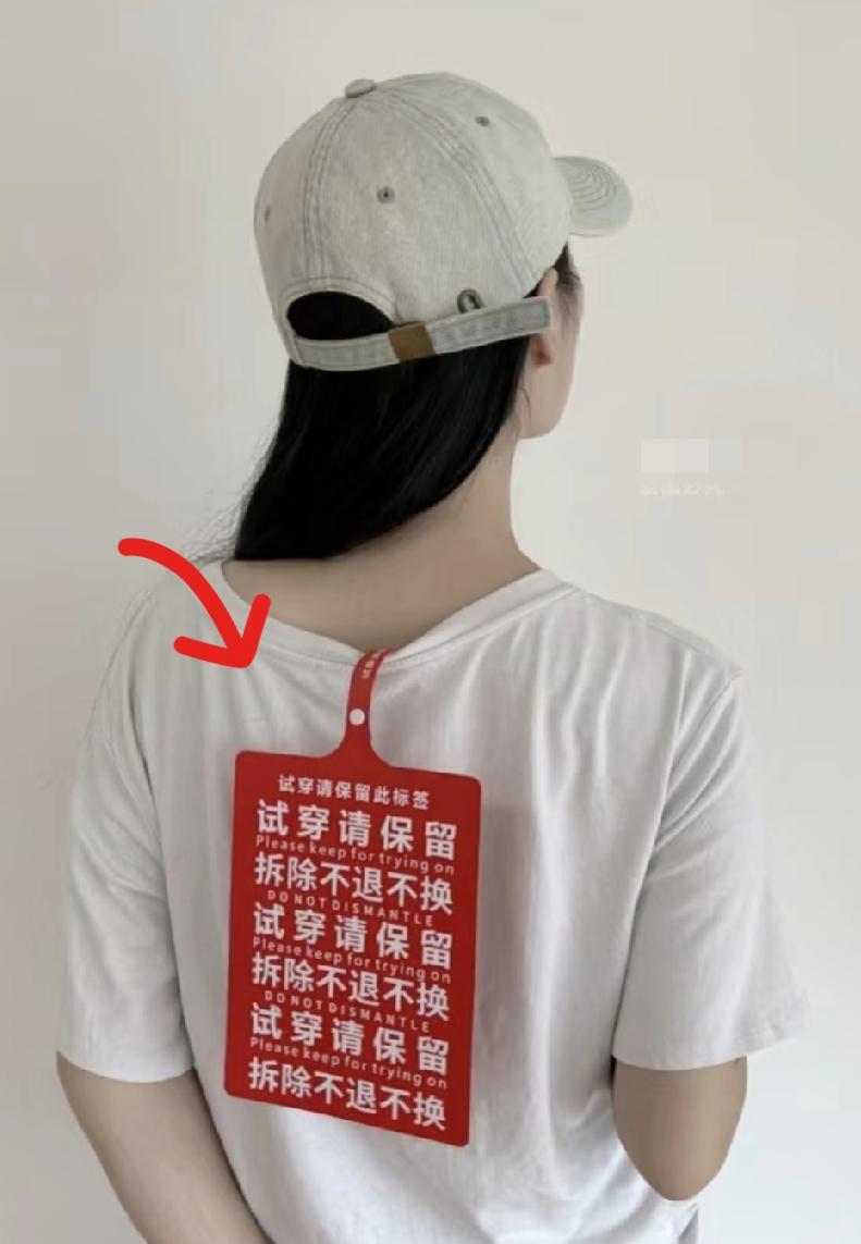 被“穿完就退”的骚操作坑惨了,商家们也开始“整活”了! 直接把吊牌搞成巴掌大,花里胡哨挂在衣服最显眼处,明着不让你偷偷穿出门拍照。 说真的,这招看着简单粗暴,却满是无奈。七天无理由退货本是给消费者的便利,结果被少数人钻了空子,穿够了、拍够了就退货,让商家白白承受损失。 更气人的是,少数人的不诚信,最后要所有消费者买单。现在退货门槛越来越高,真心想买东西的人,反而要被各种规则限制。 其实诚信都是相互的,消费者要权益,商家也要生存。你觉得商家这招“物理防退货”靠谱吗?如果是你,会支持这种做法吗?