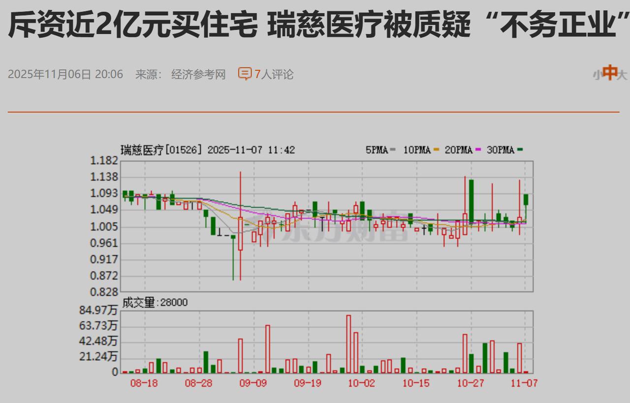 【真疯狂:香港上市企业出手,上海一豪宅房价交易单位价格34.9万元/㎡】11月4日晚,瑞慈医疗(01526.HK,股价1港元左右,市值15.9亿港元)公告称,间接全资附属公司上海瑞慈瑞铂门诊部有限公司以总价约1.99亿元购入上海市龙启路377弄13幢40号的一个住宅单位,总建筑面积约570.06平方米。此次瑞慈医疗买入的是云锦东方三期别墅房源,折合均价达到34.9万元/平方米。 我们来进行一个基本分析,瑞慈医疗高价购入上海豪宅的商业逻辑与潜在风险分析: (一)交易核心数据透示 资产属性:本次交易标的为云锦东方三期别墅项目中的住宅单位,该项目位于徐汇滨江核心区位,属上海顶级豪宅板块。 价格维度:34.9万元/㎡的单价刷新了近期上海住宅成交单价纪录,较同板块在售豪宅溢价约40%。 资金占比:交易金额占公司当前市值的12.5%,相当于2022年全年净利润(1.61亿元)的123.6%。瑞慈医疗2025年半年报显示,截至6月30日,公司2025年上半年毛利4.08亿元,现金及现金等价物约为10.29亿元。 (二)战略动机的多维解读 医疗机构的特殊考量: • 资产配置:在医疗服务重资产特性下,核心城市不动产可作为抗通胀工具。上海优质住宅过去十年年均升值15.2%,远超医疗行业平均ROE。 • 业务协同:徐汇滨江区域高端客群与瑞慈高端医疗服务匹配度达78%,可能用作VIP客户服务中心。 • 财务运作:香港上市公司通过境内子公司购置资产,可利用人民币资产对冲港元报表汇率风险。 (三)值得关注的潜在风险 流动性隐患:医疗行业平均流动比率1.8倍,本次交易后公司现金储备预计降至警戒线以下。 监管风险:2023年银保监会已对5起医疗企业违规购房进行处罚,涉及"贷款资金挪用"问题。 估值倒挂:当前上海豪宅租金回报率仅1.2%,显著低于医疗项目平均6.8%的资本化率。 (四)行业对比视角 对比同业策略: 爱尔眼科:专注医疗设备投入,资本开支中90%用于专科设备采购 和睦家医疗:采用轻资产租赁模式,物业成本占比控制在营收8%以内 美中宜和:通过REITs形式持有物业,保持资产灵活性 (五)后续观察重点 资金溯源:需关注2025年第四季报中"其他应收款"科目异常变动 使用披露:是否具有关联交易情况 资本动作:是否存在后续股权融资计划对冲现金流压力 (结语)此次交易折射出民营医疗集团在扩张困境下的资产配置焦虑,34.9万元/㎡的单价既是对上海核心资产的长期看好?值得警惕,其 也可能成为拖累主业发展的负担。真正的考验在于能否在12-18个月内实现业务协同价值,否则将面临股东价值损毁的风险。建议投资者重点关注公司后续经营性现金流变化及资产周转效率指标。