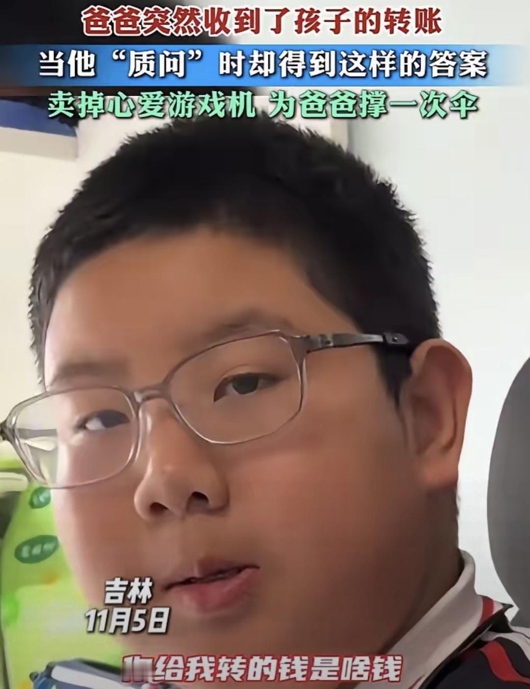 吉林一个初二学生小张把刚买的两千多的游戏机全款转给了父亲。那天晚上老爸正刷手机,突然跳出一条转账记录。一问才知道儿子把游戏机卖了。爸爸当时火气就上来了,问是不是没跟家里商量。儿子憋了半天说听父亲接电话时提过借钱,还看到门口贴催费单,觉得家里缺钱想帮忙。 父亲听完愣在原地,后来红着眼眶说让儿子专心学习。第二天有邻居看见父亲蹲在小区门口抹眼泪。这事传到网上后,很多人说现在孩子懂事得太早了。父亲最后把钱存在了儿子名下银行卡里,说等他以后用。