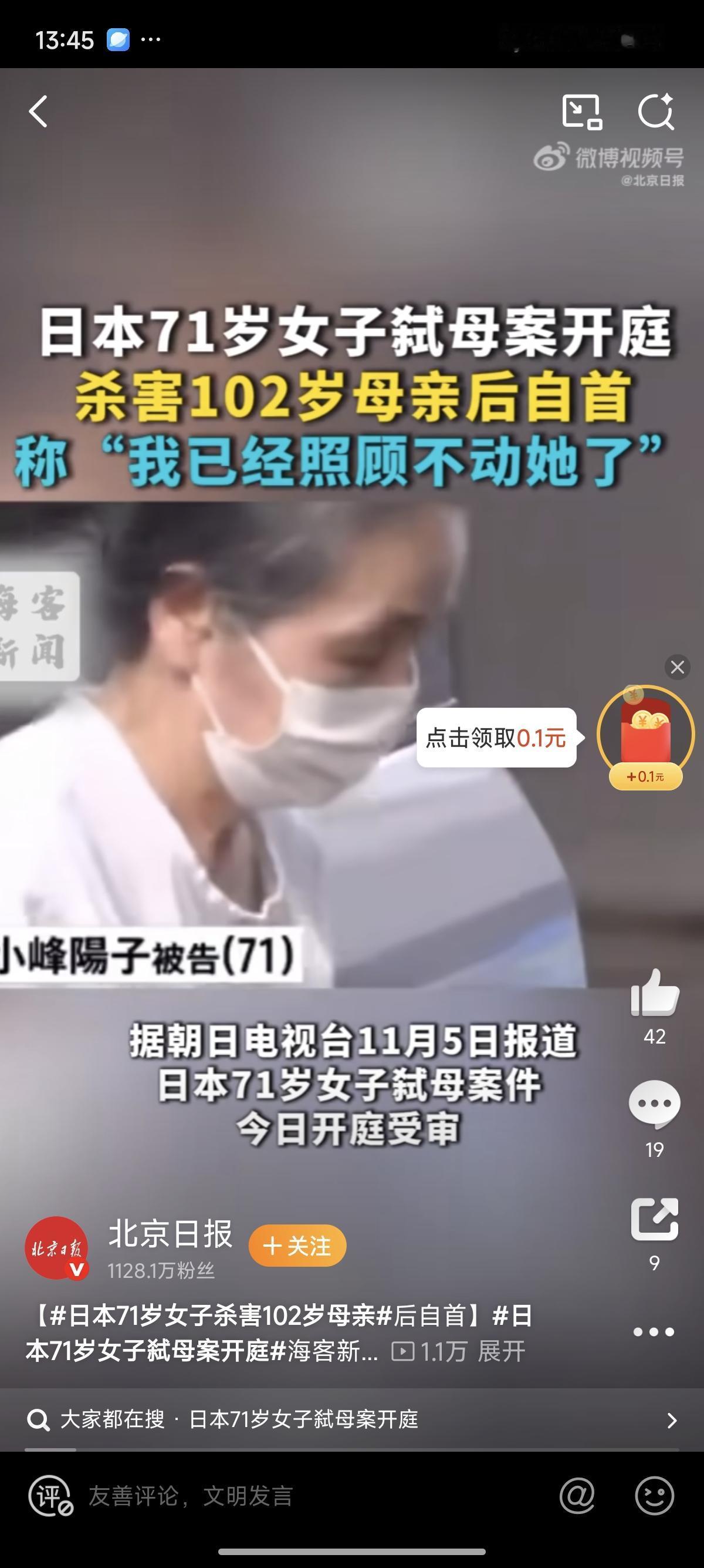 【日本71岁女儿勒死102岁母亲:这起命案,撕开了老龄化社会最痛的伤疤】 东京一71岁女子小峰洋子,把102岁母亲勒死后5分钟就自首,哭诉“真的照顾不动了”… 她独自照料失能母亲多年,丈夫去世、自己失业,每天背母亲如厕,累到崩溃。案发当天母亲摔下床,她因体力不支,一时冲动下了狠手… 这哪是谋杀,明明是老龄化社会“老老照护”的悲剧缩影!日本超半数失能老人靠高龄亲属照顾,类似惨案近年频发。当照护者被压力压垮,社会却没给他们一个“喘息的出口”…