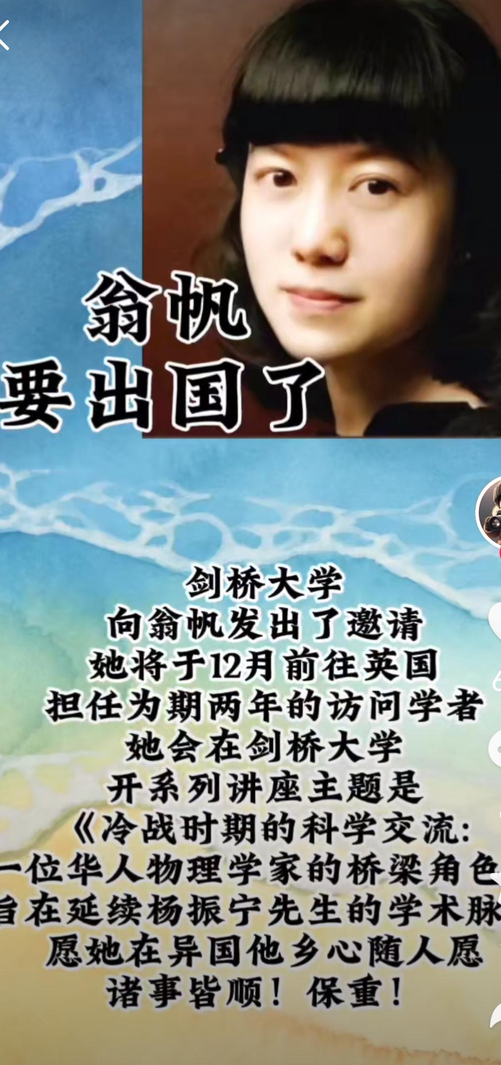 十年沉淀终成底气!翁帆从跨界读博到剑桥访学,用7篇核心论文撕掉“名人光环” 2025年11月,剑桥大学丘吉尔学院正式向翁帆发出邀请,邀请她成为该学院为期两年的全额资助访问学者。翁帆已接受邀请,计划于明年年底前往英国剑桥。 到时,她将有机会深入研究西方建筑史及近现代建筑理论,并研究杨振宁先生及其家人所捐赠的杨振宁档案。她还将在剑桥大学丘吉尔学院开设一系列讲座。 剑桥大学丘吉尔学院向翁帆发出的访问学者邀请函,是她学术能力获得认可的直接体现,也是她今后在国际学术界更大、更广阔的平台。