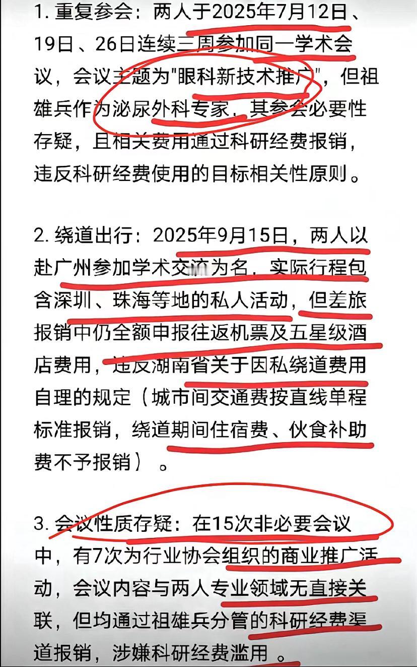 湖南省人民医院这瓜太敢了! 不查不知道 一查全是漏洞, 祖雄兵和曾琦的操作简直没把公立医院的规矩放在眼里!拿着纳税人的钱瞎折腾,这俩人也太胆大包天了吧! 谁能想象,短短6个月时间,两人共同出差居然高达27次,平均每个月近5次,这频率比小情侣约会还勤快!更过分的是,这27次出差里,15次都是“非必要会议”,还搞重复参会、绕道出行的猫腻,明摆着借着出差名义带薪摸鱼,把公家资源当成私人福利随便造! 更让人跌破眼镜的是,不雅视频居然拍在周一工作时间!这是完全把治病救人的职责抛到九霄云外了啊!更离谱的是,曾医生一年替班23次,其中18次都和祖医生值班重叠,自己让低年资医生顶班,却心安理得领全额补贴,这操作简直是把医院规则当空气! 这暴露的哪只是两个人的道德败坏,更是医院内部管理的巨大漏洞!拿着铁饭碗,占着优质医疗资源,不想着好好给患者看病,反而一门心思钻空子搞违规操作,这让信任他们的患者怎么能不寒心? 现在都是大数据时代,经济问题、合规性问题一查一个准,这种明目张胆的违规操作早该被揪出来了!医疗行业是守护生命的最后一道防线,容不得半点猫腻和懈怠,必须彻查到底,还医疗行业一片清明! 大家觉得,这样的违规医生该被直接开除吗?医院该怎么堵住管理漏洞,不让公家资源再被滥用?评论区聊聊你的看!