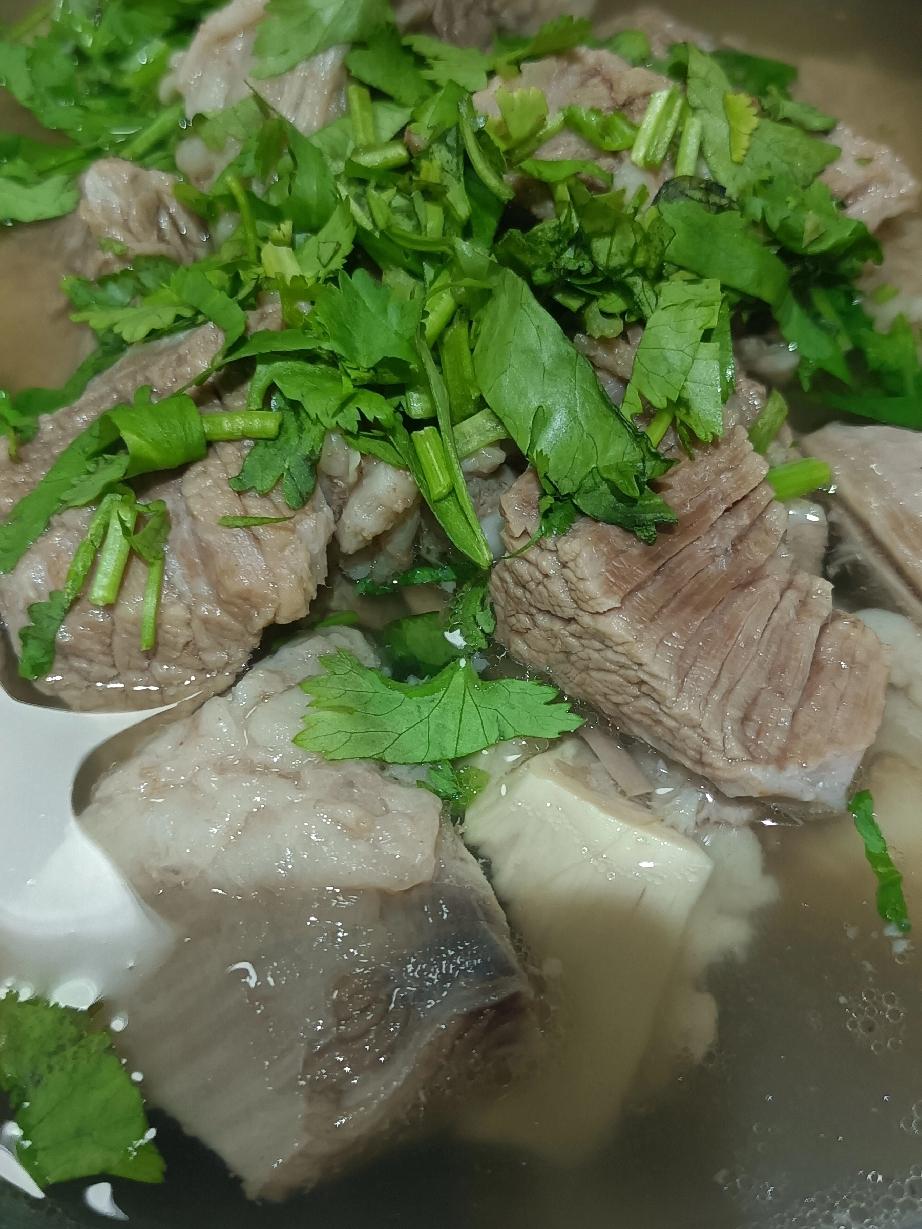 我老公说这两天都挺高兴的,为了庆祝一下我姐幸福生活的开始,今天晚上我们两口子想出去喝点! 我说当然没问题,都是小事,想吃啥随便! 我老公特别挑食,很少张罗上饭店。 昨天他值班,他今天下班早,发现有个新开的回民饭店,去吃点炖牛肉,最起码是回民开的,比较正宗! 他最近皮囊炎,正在吃消炎药,不能喝酒。 我们来个炖牛肉,还想来个羊杂汤,再要三张馅饼。老板说就我们两个的话,要一个菜就行,菜量大,多了吃不了。 那好吧,他说炖牛肉是他们家的招牌菜,那就来个炖牛肉吧! 小锅炖牛肉78,量挺大的。馅饼每张四元,也是牛肉馅的,三张十二元,一共花了九十元! 别说挺干净,还算挺好吃! 但是不得不说,馅饼没有我烙得好!皮有点厚! 我相当能吃辣,放了很多辣椒油!再放点芥末油,挺好吃的! 每天都做好几顿饭,偶尔不做饭,啥都好吃!