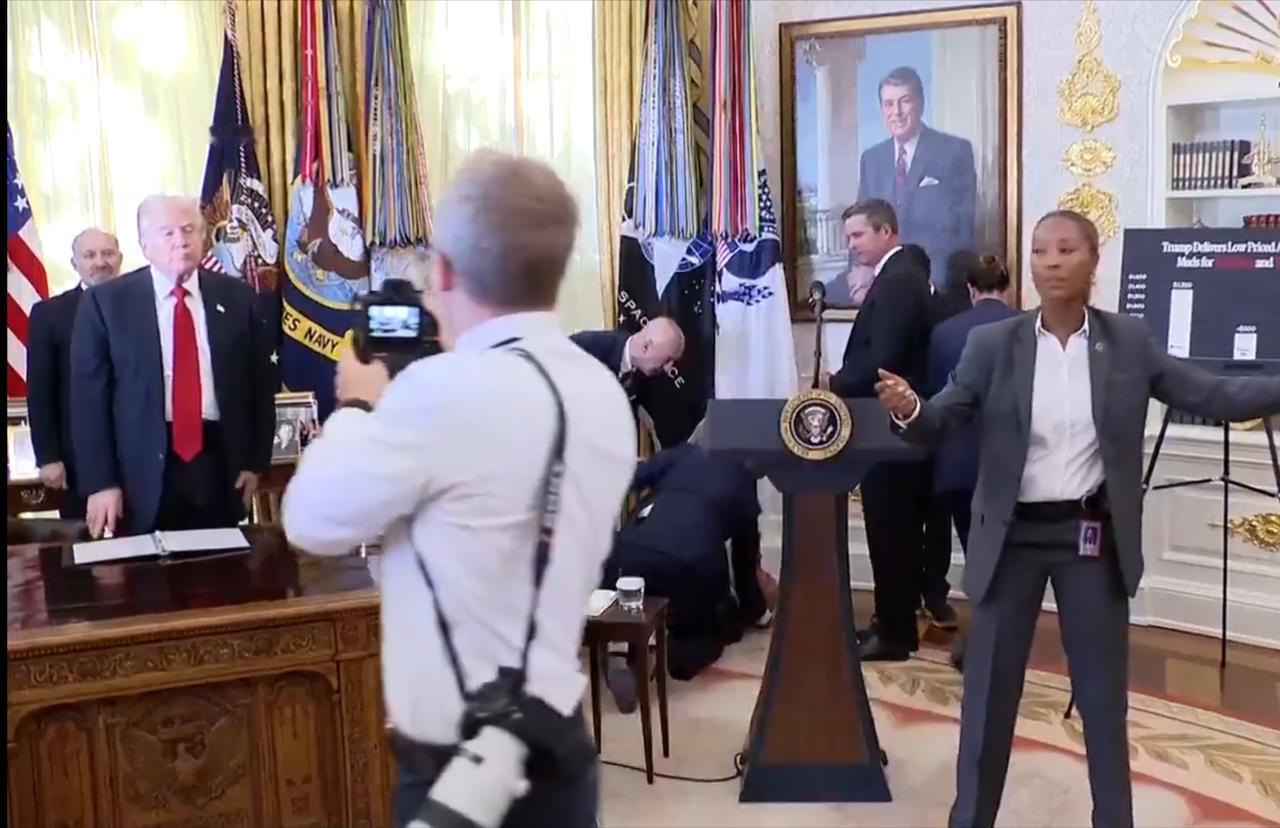 老特太委屈了,这次要为老特正名,不是老特冷漠,而是图一中,最后离开的这位记者别有用心。 事实上,当有人晕倒之后,老特也表现出了不安、紧张、着急和关心。注意看图三,那么老特全程的反应。 之所以出现图二,这种看似冷漠毫不关心的照片,是在白公馆取消记者会,请记者离开的时候,老特才转过来,看着记者。 也算是一种礼貌吧。结果被白衣服的记者,拍到了一张“冷漠”的照片。 关键还发了出来,毕竟,话题性太强了。 另外,据说晕倒的,是美国某家医药集团的负责人,不排除他是战术性晕倒,因为老特要求医药公司的减肥药降价。