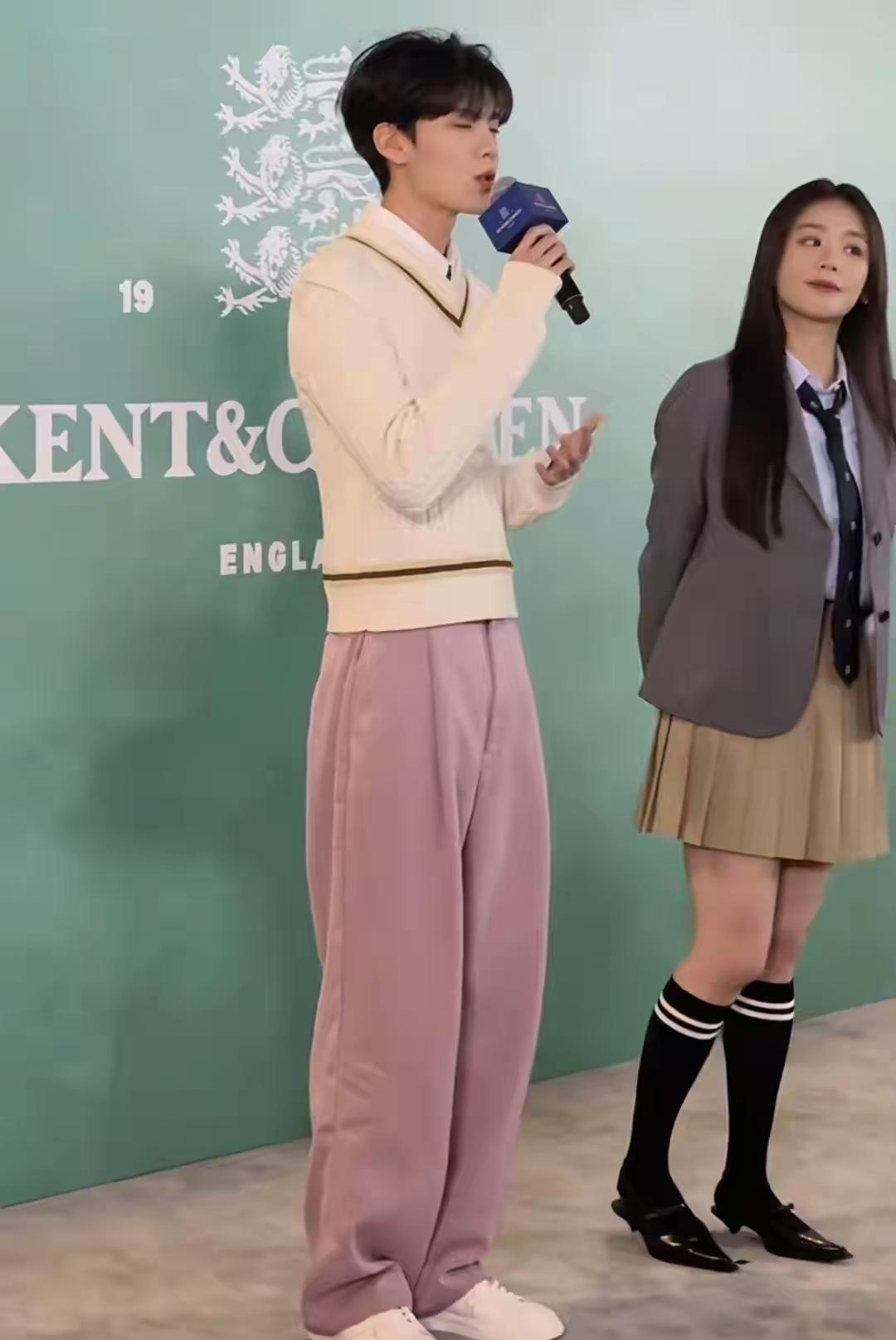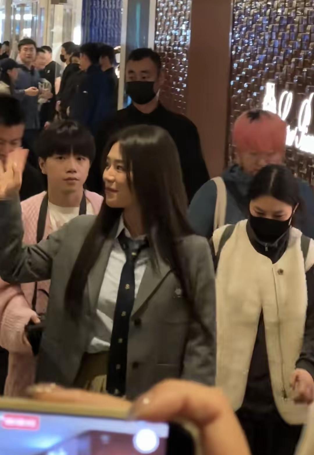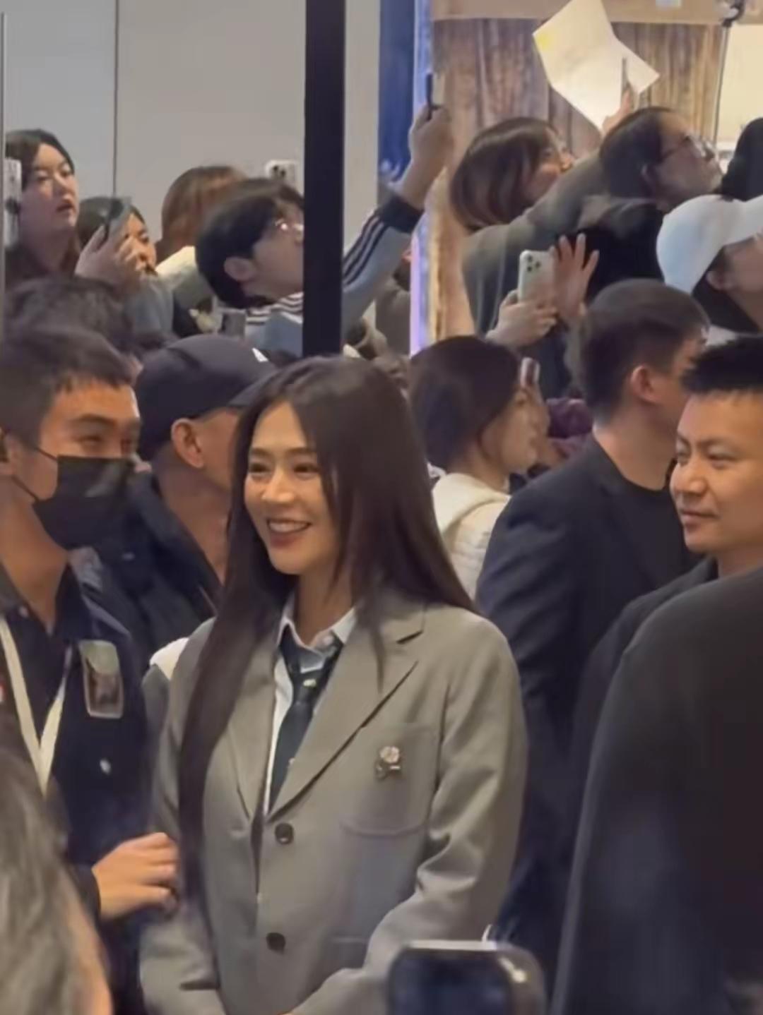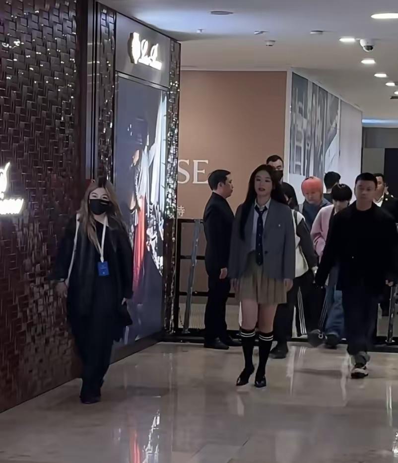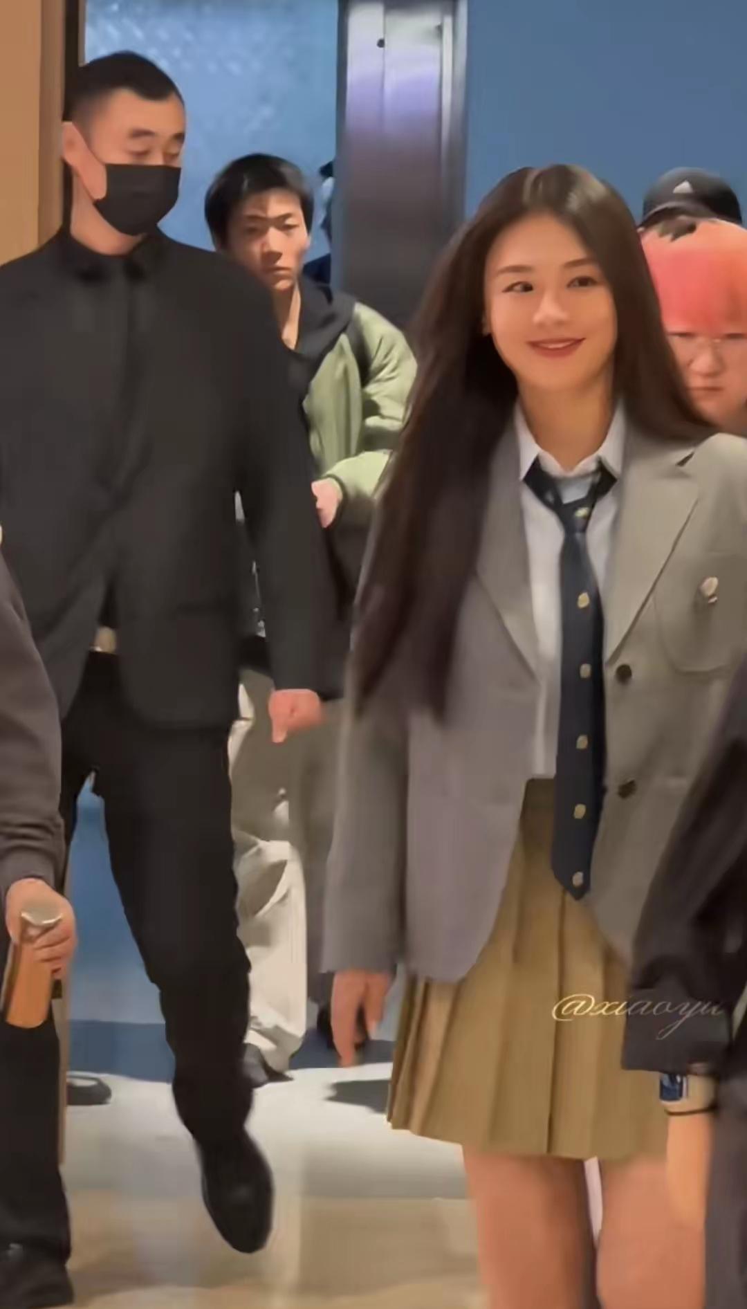 马思纯惊艳亮相南京德基出席活动! 镜头下的她,一袭学院风穿搭显得活力,阳光四射! 马思纯这次身穿灰色西服,内搭白色衬衣搭配领带,下搭卡其色百褶裙,脚踩黑色高筒长袜,秀出笔直纤细的大长腿,这造型被网友夸爆了! 入场的时候,挥手与网友热情打招呼,满脸笑容,顺直长发披肩,又美又甜,美的令人陶醉!
