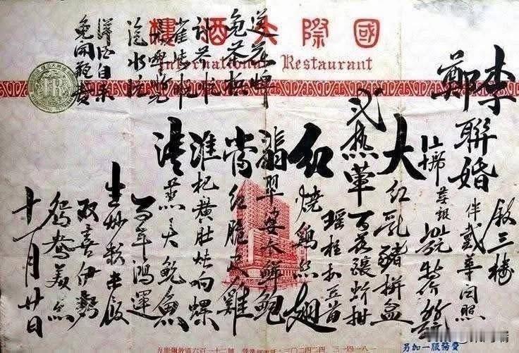 当年的香港,要是能看懂并且解读出这张多年前的婚宴菜单上的内容,还有每一道菜的寓意,那可真要夸你们厉害啦!以前营业部的那些经理,得先把毛笔字练好了、写得漂亮,才能坐到营业部经理的位置上呢。