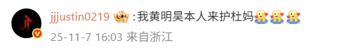 黄明昊力挺杜华我黄明昊本人来护杜妈 发文支持黄明昊新剧《四喜》,黄明昊在评论区回复:“我黄明昊本人来护杜妈[老师爱你][老师爱你][老师爱你]”