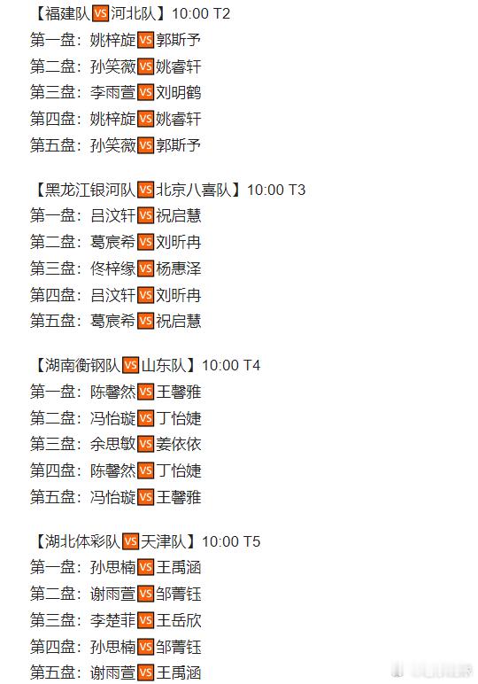 【11月7日青年组团体赛阵容】