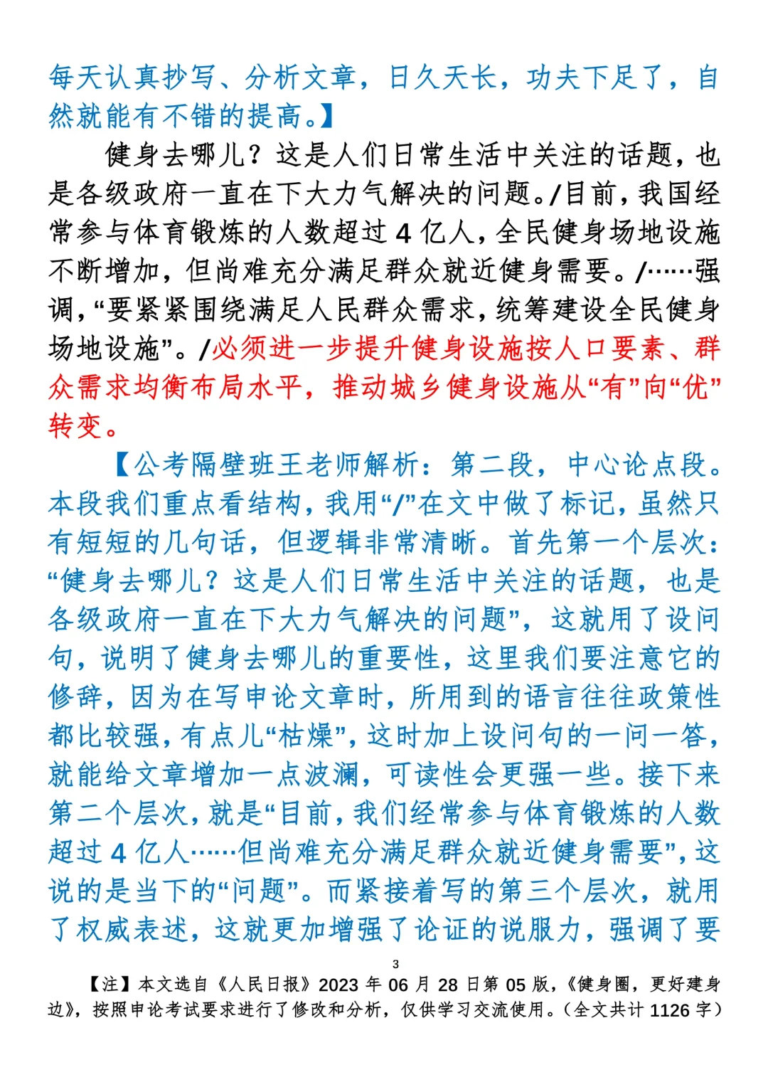 如何抄写:每日抄写文章发在“公考隔壁班王老师”账号,红色字是重点句和结构句,黑色字是正文,蓝色字是解析,大家抄写时不必抄蓝色字。建议先通读全文,做到心中有数再开始抄写,效果会更好。 关于文章:抄写文章来源于人民日报,但每篇文章我都根据申论考试要求进行了修改:一是重写或修改开头、结尾;二是统一段首句句式结构;三是调整段落字数,使文章结构更均衡;四是简化复杂长难句,使之更具可模仿性。每篇文章无论修改多少,都是基于申论考试要求,毫无对人民日报文章品评之意。(此处致敬人民日报)