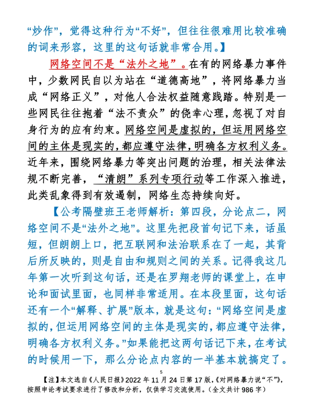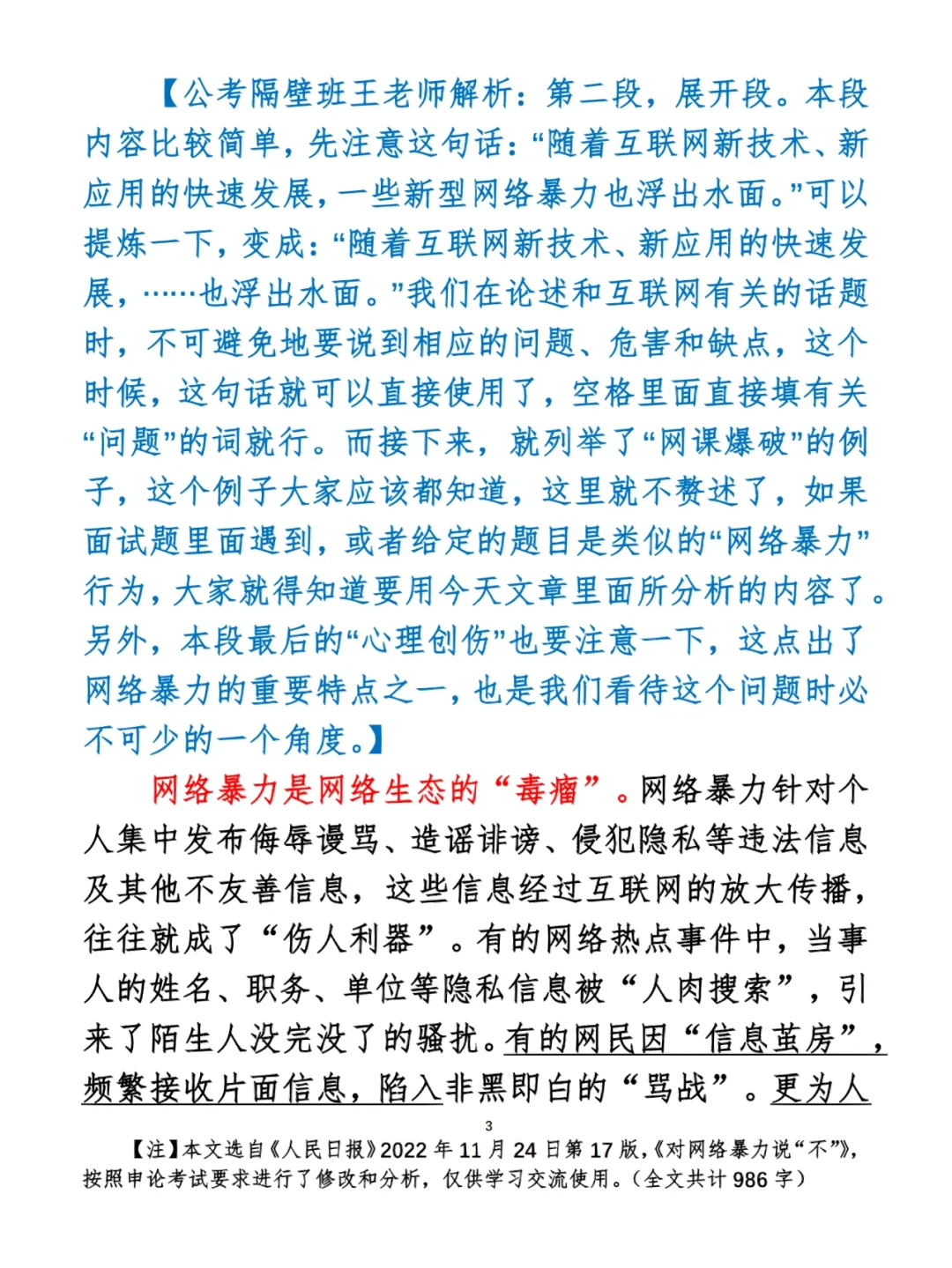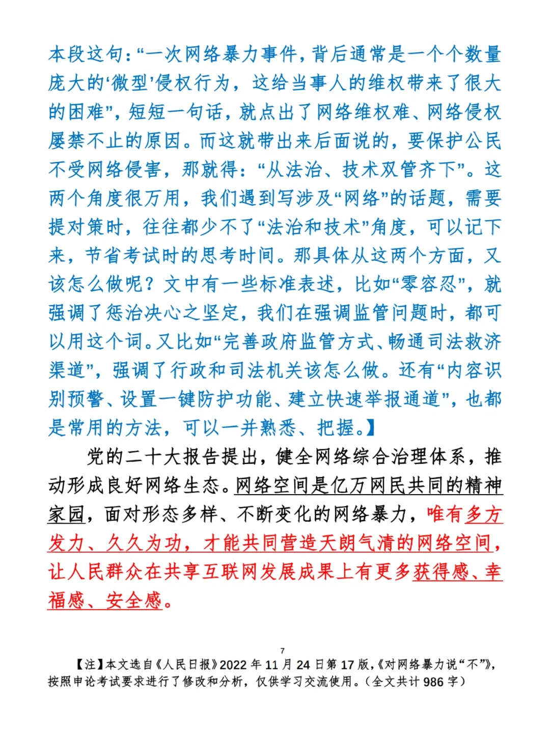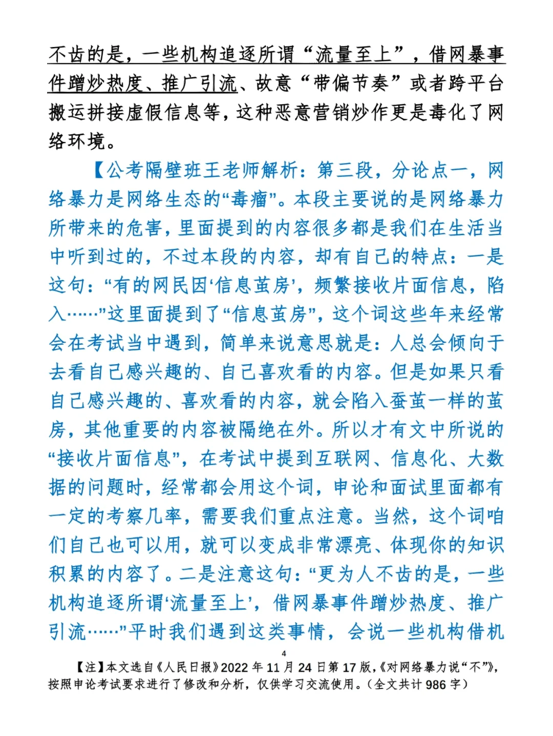 今日打卡作业: 1. 选一句你最喜欢的金句 2. 抄写全文红字+划线部分内容 3. 写完后在留言区打卡 ⭐️ ⭐️ ⭐️ ⭐️ ⭐️ ⭐️ 如何抄写:每天的抄写文章以图片形式发在“公考隔壁班王老师”账号,红色字是重点句和结构句,黑色字是正文,蓝色字是解析,大家抄写时不必抄蓝色字。建议先通读全文(包括蓝色解析部分),做到心中有数再开始抄写,效果会更好。 关于文章:抄写文章来源于人民日报,但每篇文章我都根据申论考试要求进行了修改,主要集中在四个方面:一是重写或修改开头、结尾;二是统一段首句句式结构;三是调整段落字数,使文章结构更均衡;四是简化复杂长难句,使之更具可模仿性。每篇文章修改幅度不同,无论修改多少,都是基于申论考试要求,毫无对人民日报文章品评之意。(此处致敬人民日报) 关于解析:我会在文章每段后面加一段蓝色字的解析,是我自己在抄写时的感悟,篇幅时间有限,不能面面俱到,但求重点突出。如果你有其他感悟,也希望能在评论里分享,我们相互学习、共同进步。 ⭐️ ⭐️ ⭐️ ⭐️ ⭐️ ⭐️ 这里是公考隔壁班王老师独创的“每天半小时・申论80分”抄写团,欢迎加入我们!
