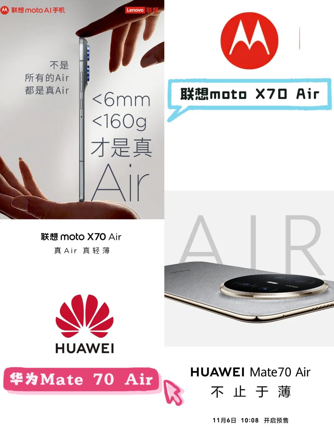联想moto喊话了:不是所有的Air都是真Air,联想moto X70 Air厚度小于6mm,重量小于160g,才是真Air!