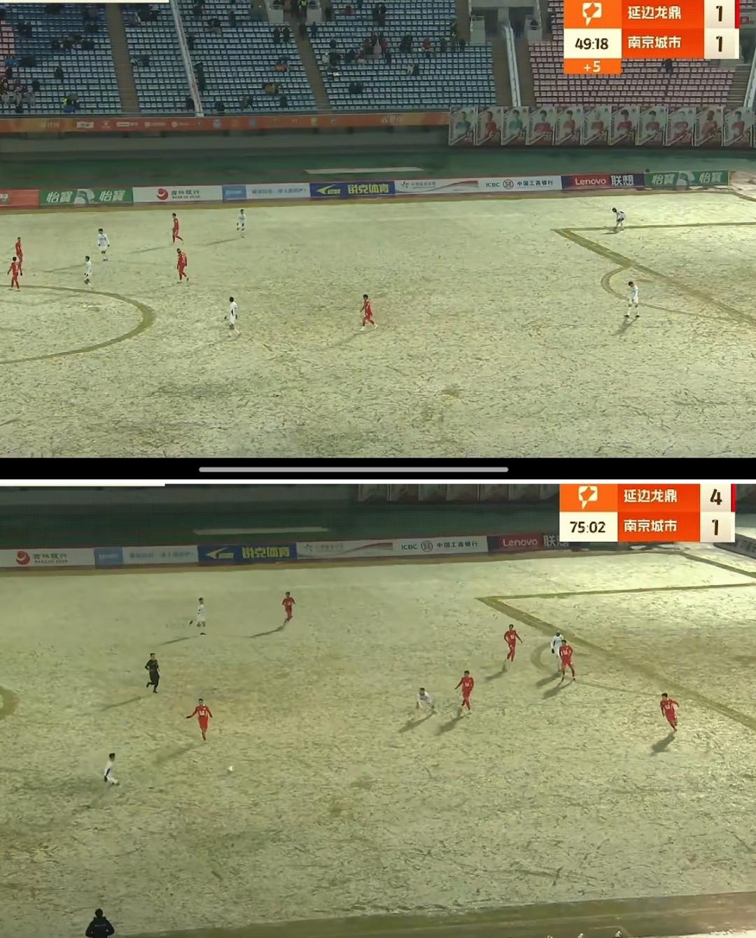 看到中甲联赛延边与南京的比赛,真的让我见了世面。这么多年来我第1次看到足球比赛过程中竟然下起了小雪,绿茵场瞬间变成了白色的海洋。 对于延边球员来说在这样寒冷的天气踢足球比赛可谓是经验丰富,对于南京球员来说难免有些不适应。 因此目前延边4:1领先南京城市真的不足为奇,毕竟现场的球迷都穿上羽绒服,因此对于南京球员来说能坚持把比赛踢完就是最大的成功。