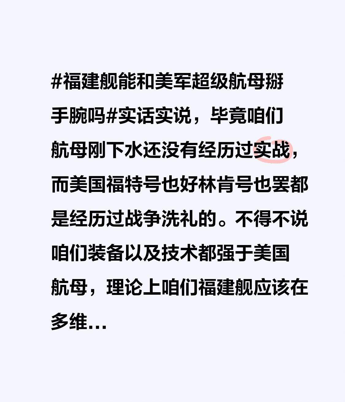 实话实说,毕竟咱们航母刚下水还没有经历过实战,而美国福特号也好林肯号也罢都是经历过战争洗礼的。 不得不说咱们装备以及技术都强于美国航母,理论上咱们福建舰应该在多维度上领先,尤其再加上与055配合,应该可以压制美航母。