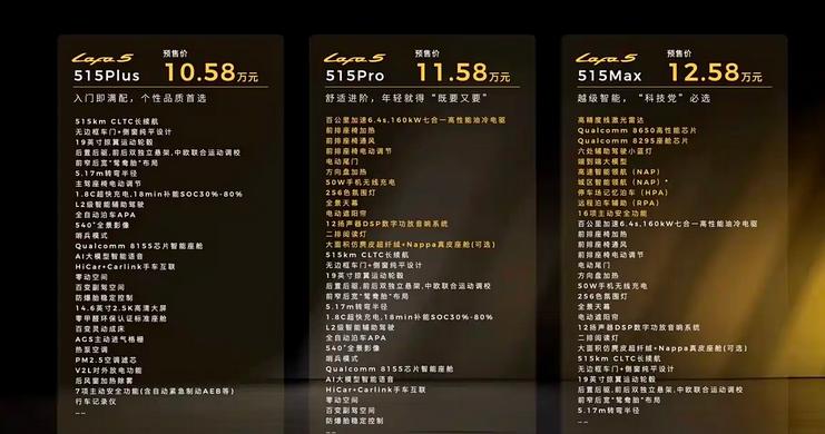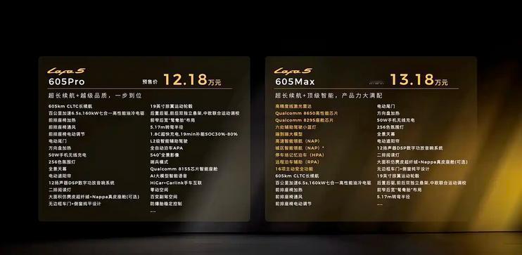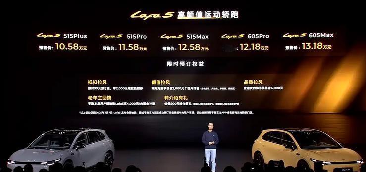 11月7日,零跑Lafa5开启预售,新车共推出5个车型版本,预售价区间为10.58-13.18万元。 全新车型定位于纯电紧凑型车,基于LEAP 3.5架构B平台打造,CLTC工况下纯电续航里程可达515-605km,配备了8295芯片、激光雷达等配置。 据悉,新车将于11月28日正式上市,其衍生车型Ultra版将于2026年上市并交付。 零跑Lafa5长宽高分别为4430/1880/1520mm,轴距则是2735mm。 动力方面,新车将提供两种动力版本车型,其中高功率版车型有着160千瓦的动力输出,最高时速170km/h;低功率版则是132千瓦,最高时速160km/h。电池部分,零跑Lafa5同样是带来了两种不同的配置,小电池对应515公里的纯电续航里程(CLTC),大电池则是605公里(CLTC工况) 点个关注吧!汽节车社,车圈热点资讯每日一扫清!【来自懂车帝车友圈】