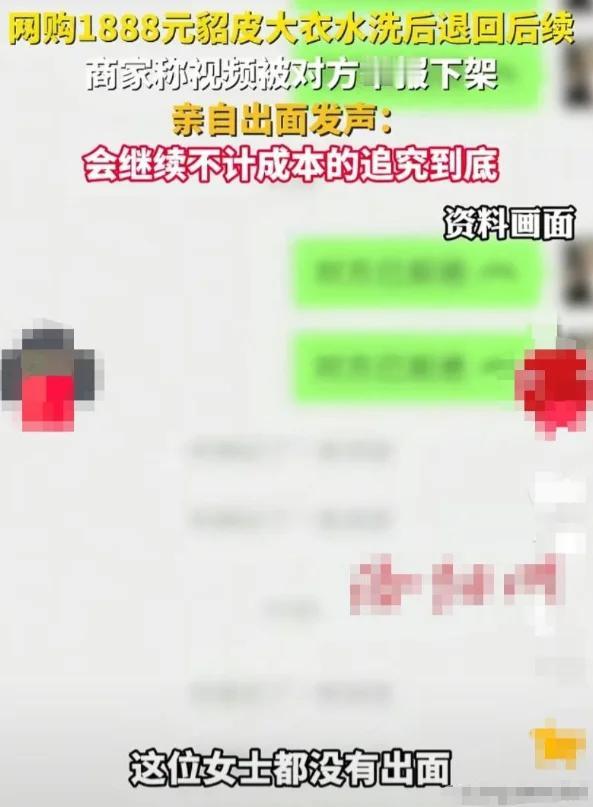貂皮这么便宜了? 山东济宁。宝妈花1888元买了一款,卖家说衣服不能沾水,5天后宝妈申请退货。卖家发现衣服水洗后变硬,平台却已退款。卖家驱车300公里到宝妈小区,报警,大喇叭喊人,宝妈拒不见面,卖家说不计成本追究到底。 宝妈真的穷,2000元的便宜那么好占吗?如果衣服完好,不影响商家二次销售,商家绝不会做出失去理智的行为。如今好了,商家不仅要求赔偿,全小区都知道了宝妈的无赖行径,怎么在邻居朋友们面前抬起头?无异于社死。 看出来生意难做了,如果上万元的貂皮被损坏,不知商家会做出啥事来,可别把人逼急了。