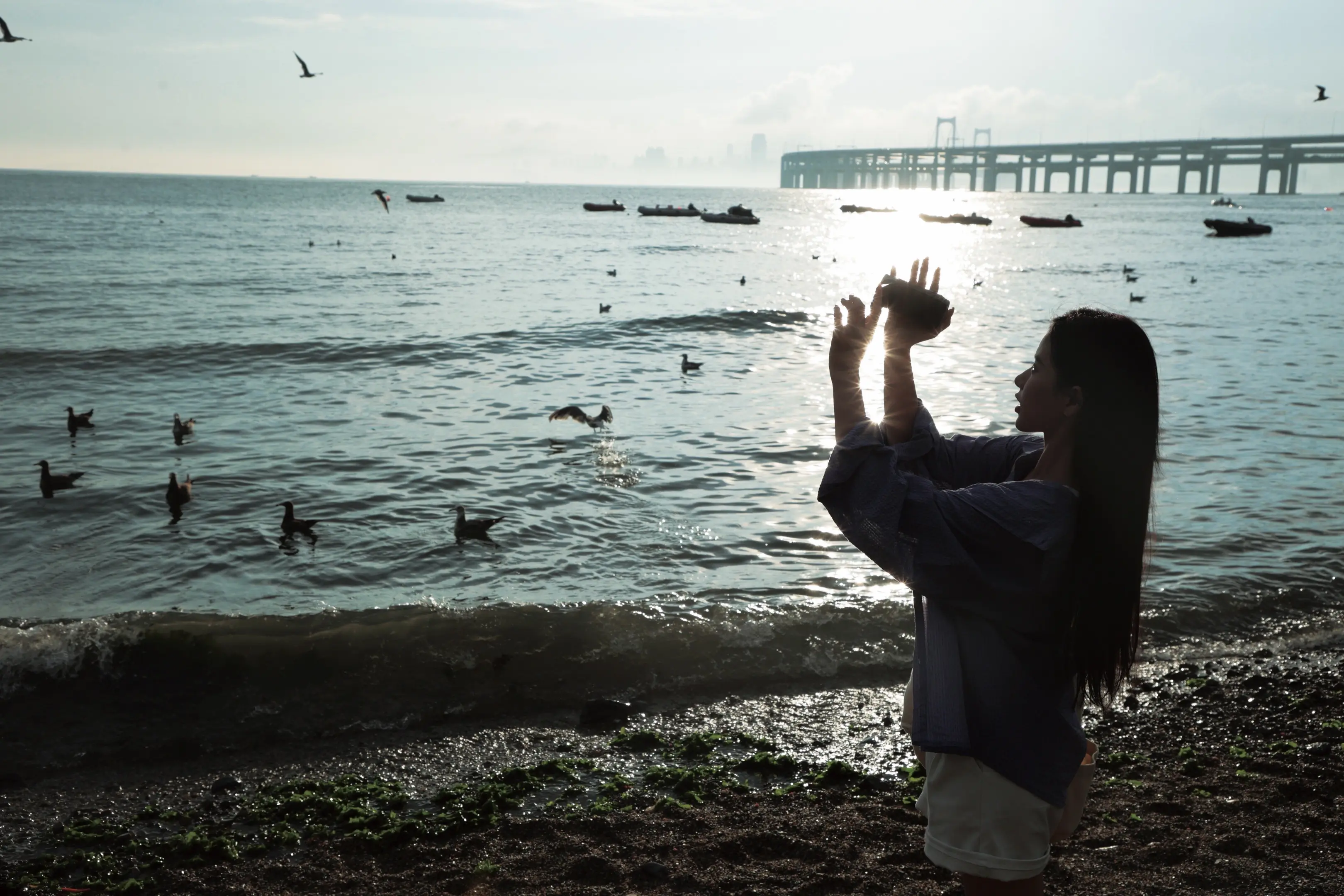 宝子们!海边日落真的太好拍了!今天穿的这件渐变泳衣,颜色和晚霞几乎融为一体,剪裁