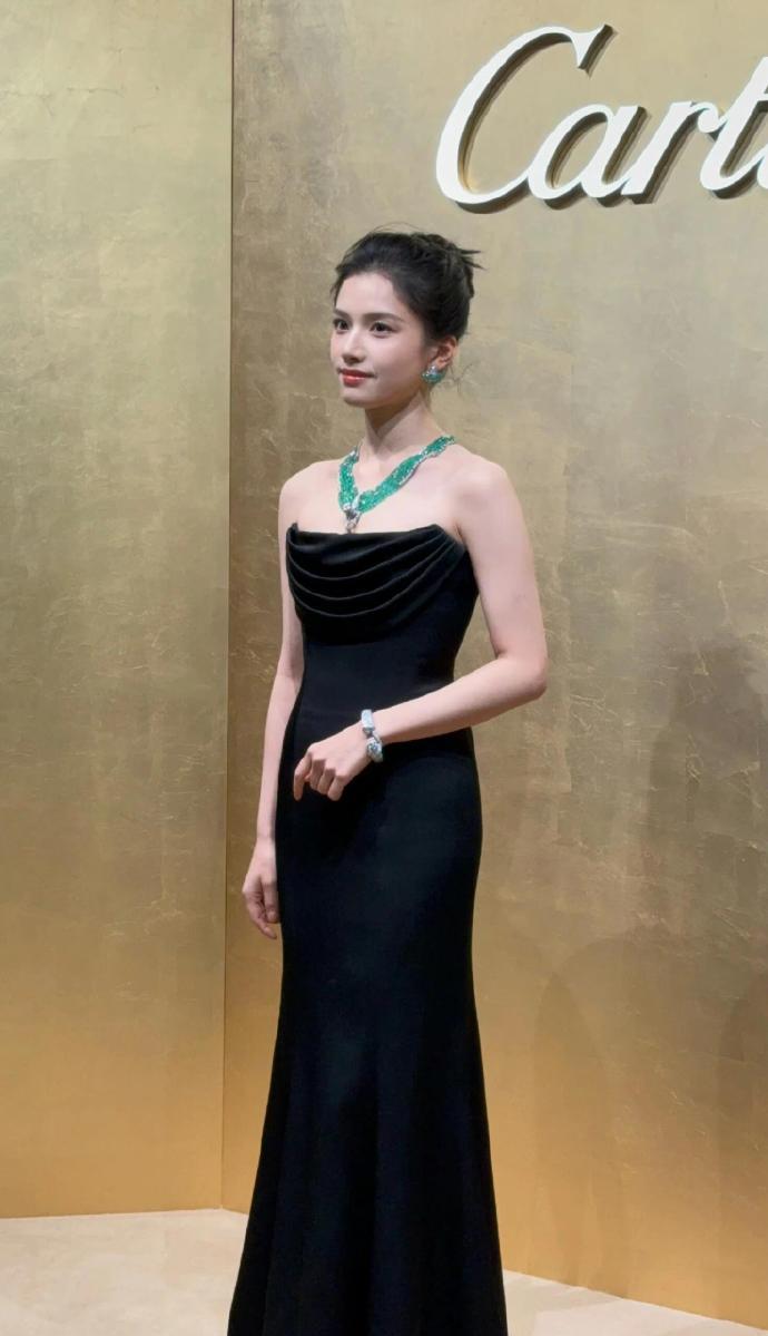 今天张婧仪搭配的非常高贵,她这次搭配的很简洁,不过看上去高雅又迷人。 张婧仪这回穿了一件黑色的抹胸裙,让她秀出了完美的身材曲线和漂亮的香肩,气质超好。 她有着极为苗条的身材,穿上这样简洁的服饰非常的显高。 张婧仪脖子上戴着绿色的项链,同时搭配了绿色的耳坠,这种绿色真的是很适合她,能够让她彰显出冷艳之美。 她画着精致的妆容,看上去有种楚楚动人的感觉,越变越漂亮了。 张婧仪举止优雅,气度不凡,整个人显得很有魅力。