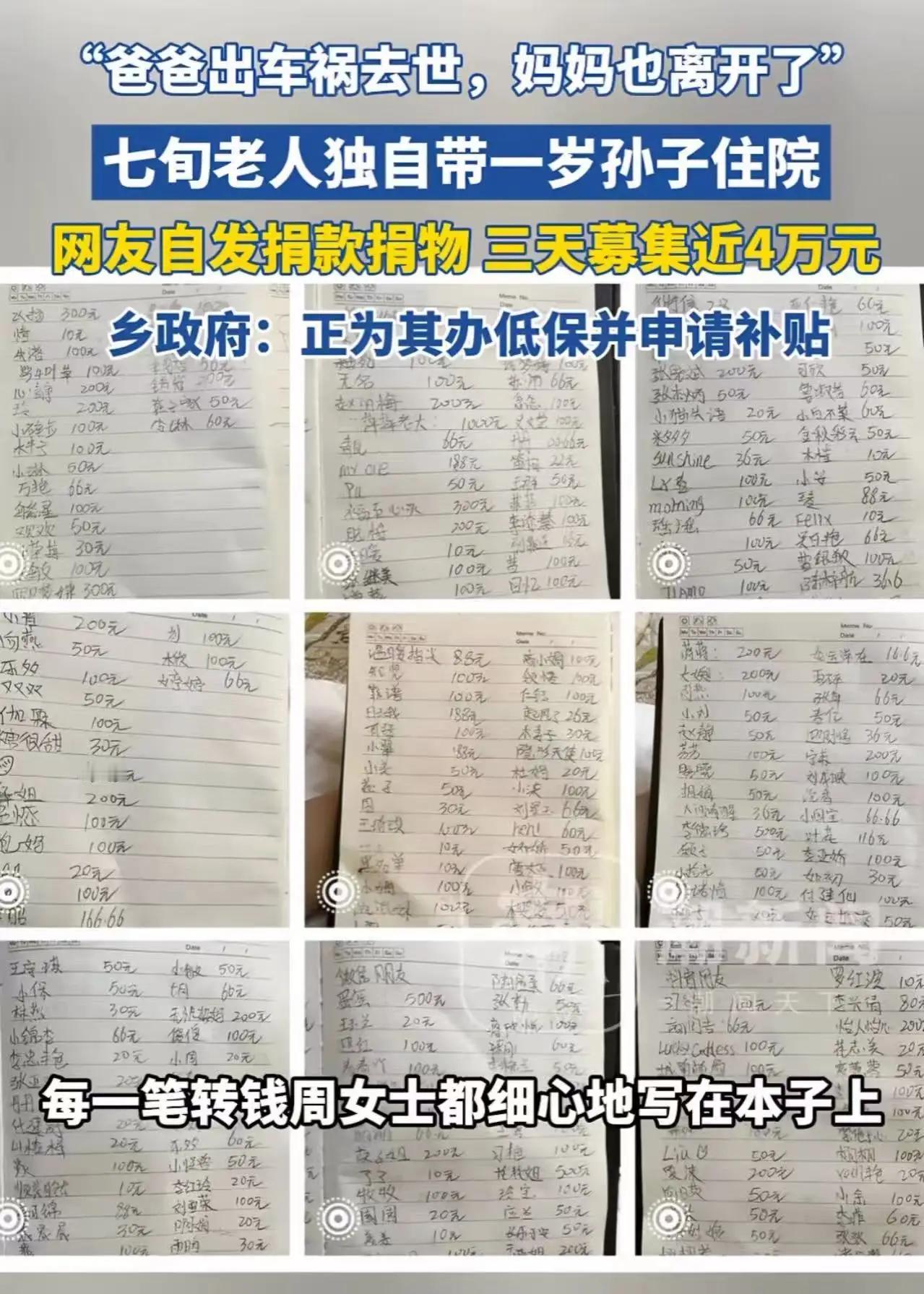 昆明病房揪心一幕:70岁老人抱着1岁娃住院,单薄衣衫下的真相,看哭无数人 昆明的王女士去医院探望亲友,刚走到儿科病房走廊,就被角落里的一幕揪紧了心。一位头发花白、满脸皱纹的老人,正佝偻着身子坐在病床边,怀里抱着个裹得单薄的小宝宝。孩子看起来才1岁左右,小脸冻得有点发红,时不时发出微弱的哼唧声,老人则一边轻轻拍着孩子,一边偷偷抹眼泪。 王女士本身也是妈妈,见孩子穿得比同龄宝宝少很多,病房里空调又凉,忍不住上前轻声问:“阿姨,孩子这么小就住院了,他爸妈呢?怎么不给孩子多穿点呀?” 听到这话,老人的眼泪瞬间决堤,哽咽着说出的话,让王女士当场红了眼眶:“孩子爸在他两个月大的时候,出车祸走了……孩子妈受不了打击,留下孩子就再也没联系过,下落不明啊!” 原来,老人姓陈,今年72岁,孩子是她的小孙子。陈阿姨的小儿子原本有个幸福的小家,可一场突如其来的车祸,让这个家庭彻底崩塌。儿媳不堪承受丧夫之痛和抚养孩子的压力,在孩子满月后没多久就悄悄离开了,从此杳无音信,连一句交代都没留下。 家里的顶梁柱倒了,唯一的孙子成了陈阿姨活下去的希望。可老人年事已高,身体本就不好,平时靠捡废品和微薄的养老金勉强糊口。这次孩子突发肺炎,高烧不退,陈阿姨急得整夜没合眼,揣着攒了大半年的零钱,独自抱着孩子来医院就诊。 “住院费交了之后,剩下的钱只够给孩子买药了,实在没钱买厚衣服了。”陈阿姨拉着孩子单薄的衣角,声音里满是愧疚,“孩子跟着我受苦了,要是他爸妈在,也不至于让他遭这份罪。” 王女士看着老人布满老茧的手,再看看孩子冻得发紫的小脚丫,心里五味杂陈。她立刻掏出手机,给孩子拍了张照片,发到了自己的朋友圈和小区业主群,配文:“昆明儿科病房,72岁奶奶独自带1岁孤儿住院,孩子缺衣少食,有愿意伸出援手的朋友吗?” 让她没想到的是,消息发出后,短短几个小时就引发了无数人的关注。小区里的宝妈们纷纷送来自家孩子闲置的衣物、奶粉和尿不湿;有热心市民专门跑到医院,给陈阿姨留下了一笔慰问金;甚至有儿科医生主动联系医院,为孩子申请了部分医疗费用减免。 王女士陪着陈阿姨整理捐赠物资时,老人一边抹泪一边念叨:“没想到这么多好心人帮我们,真是遇到贵人了。”孩子似乎也感受到了这份温暖,对着前来探望的陌生人露出了甜甜的笑容,那稚嫩的脸庞,让在场的人都忍不住红了眼。 后来王女士了解到,陈阿姨的大儿子常年在外打工,日子过得也不宽裕,根本顾不上帮衬母亲。这些日子,陈阿姨每天天不亮就起床给孩子熬粥,白天在医院照顾孩子,晚上还要回家收拾捡来的废品,一天只能睡三四个小时。可即便如此,她从没抱怨过一句,总是抱着孩子说:“奶奶一定好好照顾你,把你养大成人。” 这件事被发到网上后,很快冲上了本地热搜。有网友留言:“老人都自身难保了,还在拼尽全力给孩子一个家,这份爱太伟大了”;也有人心疼孩子:“没爹没妈还有奶奶疼,可奶奶年纪太大了,真希望孩子能被更多人守护”;还有不少人自发组织起来,想要长期资助这个可怜的孩子。 其实在我们身边,总有这样一群人,他们身处困境,却从未放弃对生活的希望。陈阿姨用佝偻的脊背,为孙子撑起了一片天;而那些素不相识的热心人,用点滴善意,温暖了这个寒冷的病房。就像有网友说的:“这个世界上,总有不期而遇的温暖,和生生不息的希望。” 现在,孩子的病情已经好转,很快就能出院。陈阿姨说,等孩子康复后,她会带着孩子好好生活,也会永远记得这些帮助过他们的好心人。而王女士也没想到,自己一个小小的善举,竟然能汇聚起这么大的能量。 生活或许有苦难,但爱从不缺席。这个发生在昆明病房的故事,不仅让我们看到了人性的善良,更让我们明白:有时候,一句关心、一份帮助,就能给身处困境的人带去活下去的勇气。 如果你遇到这样的情况,会愿意伸出援手吗?你觉得我们还能为这对祖孙做些什么?欢迎在评论区留下你的看法~大爷住院 病床上的孩子 老人就医 孩子住院记录 孩子摔伤住院 老人住院故事 母亲抱孩子就医