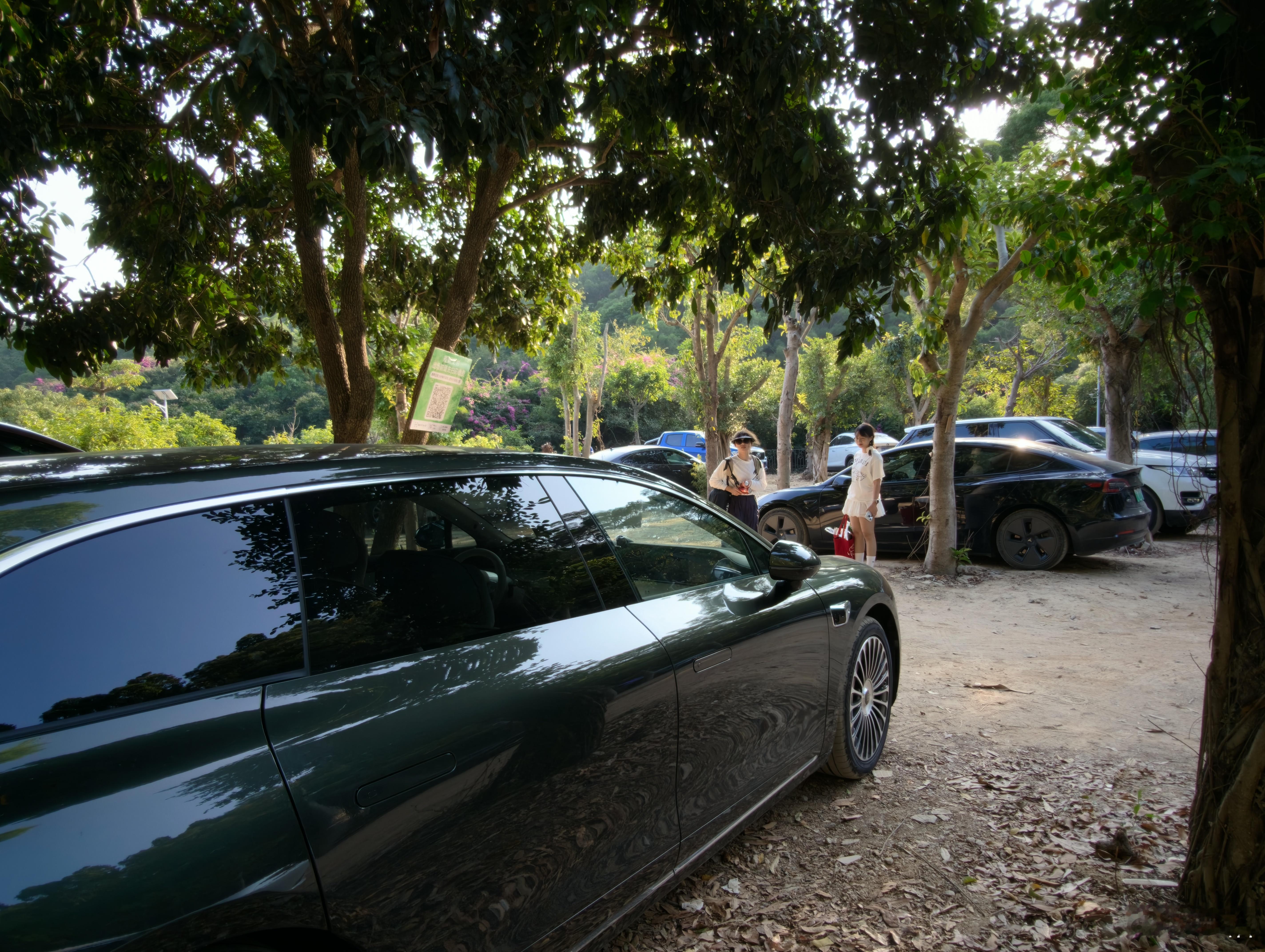 和朋友们来露营啦!周末也太堵了,只找到小路里的一个停车场,其实就是果园入口加个闸机,进来自己找缝停[笑cry]不过和享界 S9T 还蛮搭的~