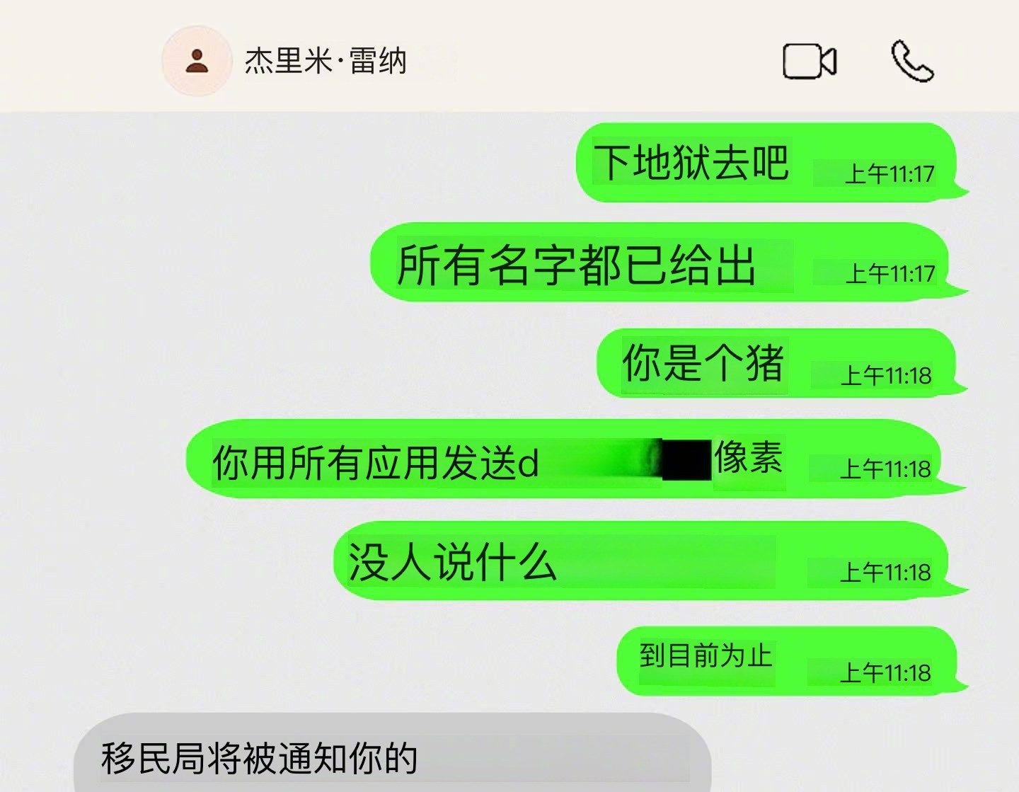 周依表示,她后来私下找 Renner 谈话,希望他能对女性更尊重一点,也尊重他们的合作。结果对方直接炸毛,放狠话:“我要打电话给 ICE(美国移民局)举报你。”