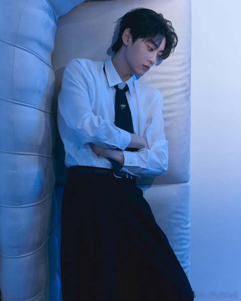 田栩宁韩束直播look,天生焦点田栩宁来啦,白衬衫+小香风西装,就这个阿栩帅啊![哇]