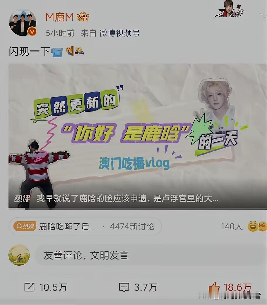 鹿晗终于没了感情包袱,露出最快乐轻松的笑脸。 鹿晗在澳门品尝美食,还做了视频分享,真是回归那个开朗眼光帅气的样子。