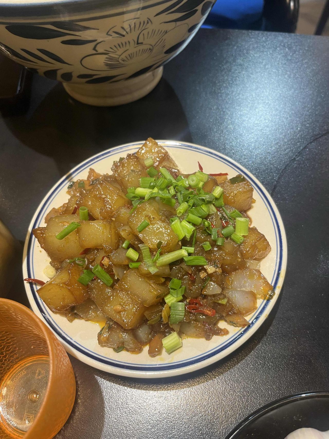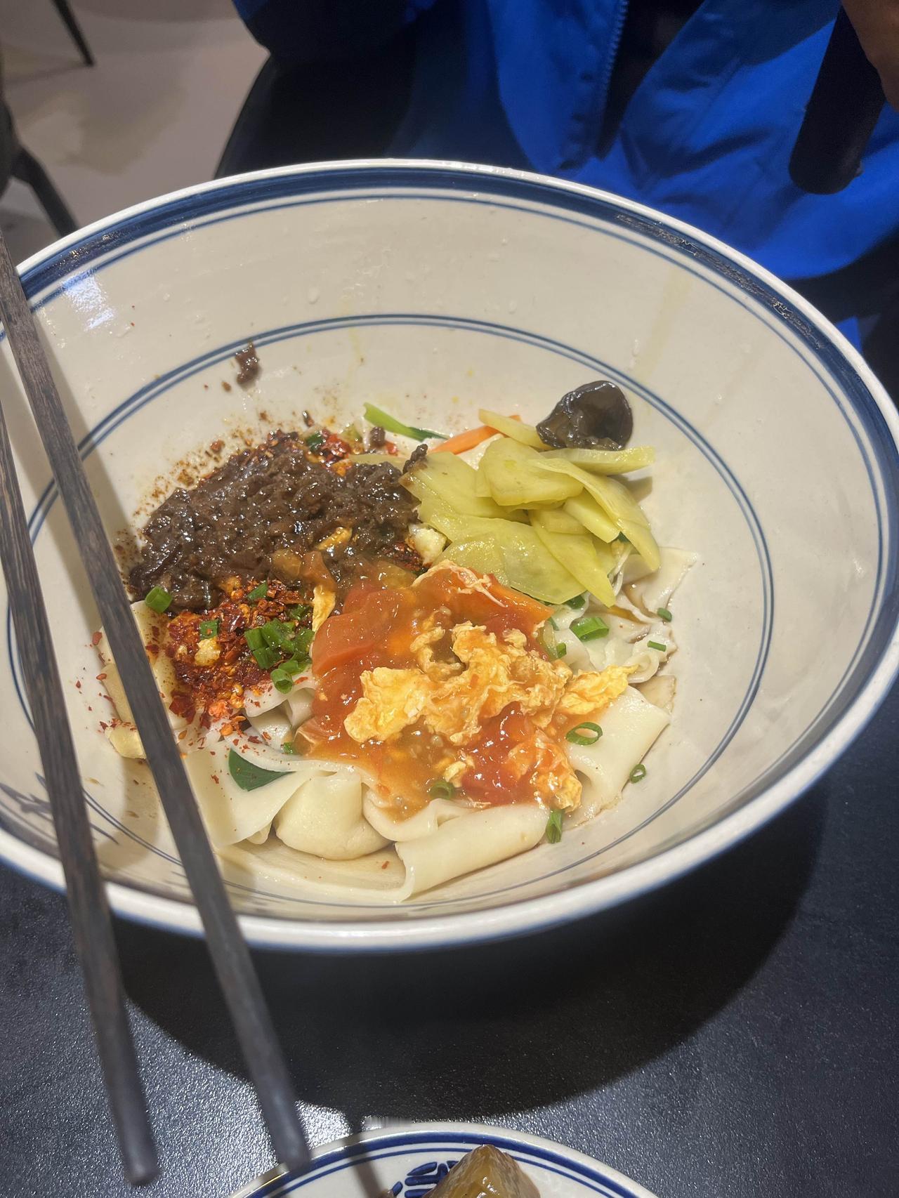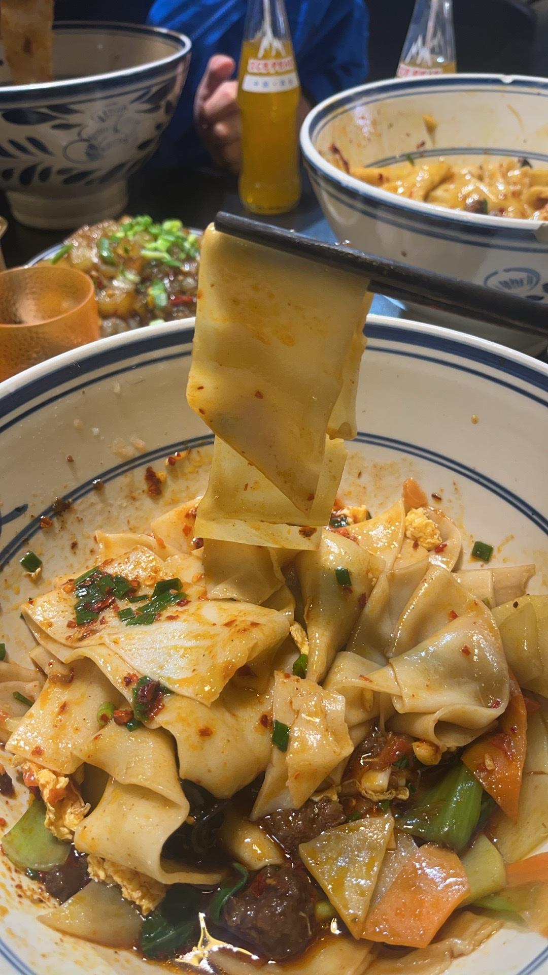 "上车饺子下车面",这句老话仿佛为旅途注入了仪式感。落地咸阳机场,我们直奔西安美食的江湖——油泼面。酒店定在钟楼附近,用头条一搜,马安安油泼面被安利为"必打卡",于是循着导航寻去。冬日三餐打卡 这家店藏得颇深,不在回民街的喧嚣里,也不在大皮院的烟火中,倒像一处隐于市井的秘境。晚上七点推门而入,店内人不多,木桌木凳透着几分古朴。菜单上,油泼面、三合一、臊子面均标价18元,还贴心标注"免费加面",瞬间让人卸下"吃不饱"的顾虑。 我们点了两碗三合一、一碗臊子面,又添了炒凉粉、醪糟和冰峰汽水。 三合一端上来,宽面筋道,臊子肉香、西红柿鸡蛋的酸甜、油泼辣子的焦香层层叠叠,用筷子一拌,红油裹着面条,香气直往鼻子里钻。臊子面汤头清亮,酸辣开胃,配着炒凉粉的焦香和冰峰的清甜,竟吃出了几分"碳水天堂"的满足。 辣子夹馍的意外惊喜 临走前,又点了一份辣子夹馍。本以为只是辣椒拌馍,咬开却见肉粒星星点点,混着油泼辣子的焦香,竟比纯肉馍更显风味。一口面,一口馍,再配着冰峰的清甜,一天的疲惫瞬间卸下。陕西话讲"美得很",果然不假,这一口,便成了西安之旅最鲜活的注脚。 尾声:碳水天堂的序章 走出店门,钟楼的灯火已亮。这一碗油泼面,一场辣子夹馍的意外,竟成了西安最地道的"欢迎仪式"。旅途的疲惫被碳水抚平,舌尖的鲜辣却已点燃期待——原来,西安的滋味,从来不在攻略的必吃榜上,而在这一碗烟火气里,在下一口未知的惊喜中。
