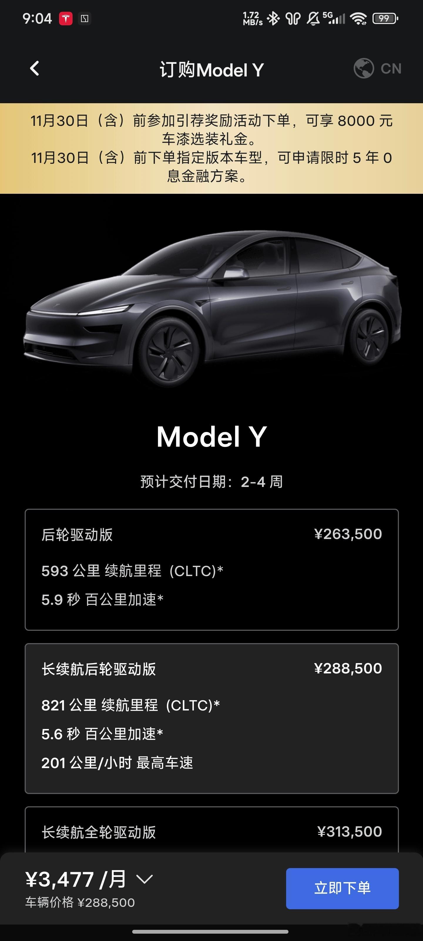 特斯拉Model Y长续航后轮驱动版来了,CLTC821公里,28.85万,交付周期半个月到一个月。特斯拉[超话]