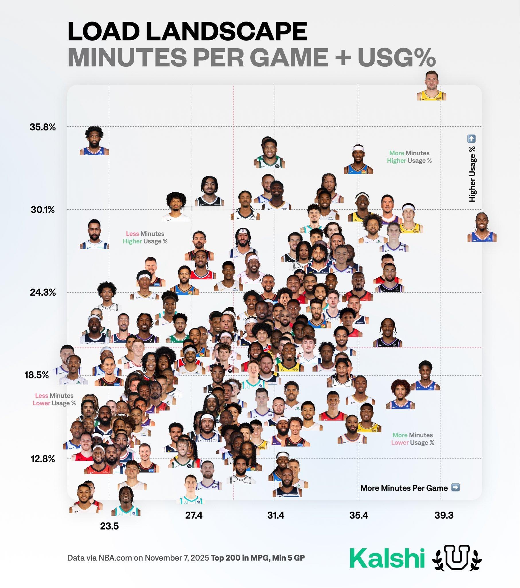 根据数据媒体的统计,东契奇是本赛季至今球权占有率最高的球员,而由于他、小里先后受伤缺阵,再加上老詹还没复出,两人的上场时间都很高,都是联盟前五的水平。 ​​​