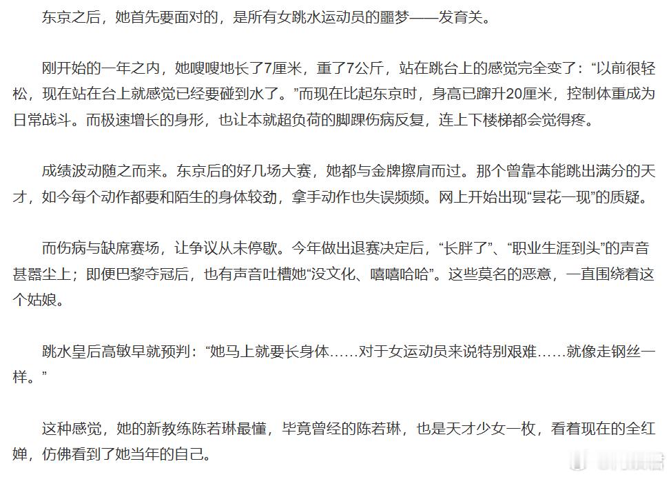 陈若琳长身体就像换了双不合脚的舞鞋全红婵上一次正式比赛是2025年5月3日,