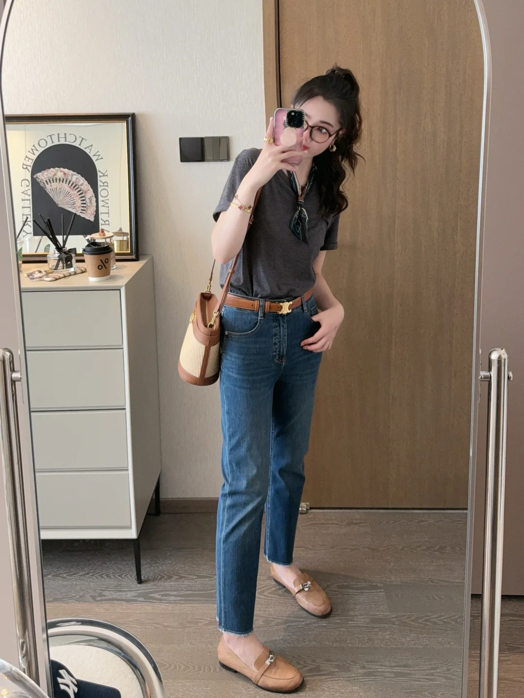 浅浅的更新一下即将过去的盛夏~ 🌿 最近穿的超多的冰丝感素T和牛仔裤~ 我可能找到了我的人生牛仔裤!这也太显腿直腿细了吧!!