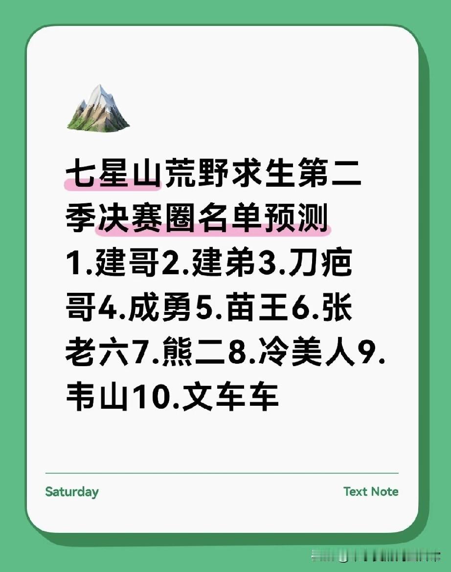 七星山求生决赛圈预测:建哥建弟稳坐前二 七星山荒野求生第二季的决赛圈名单刚漏出来,评论区直接炸了——建哥建弟稳稳占了前两名,这俩抱着几十斤野猪肉炫的“肉王”,是要把冠军焊死在手里? 剩下8个选手里,刀疤哥、成勇这些啃了30天野菜的狠人,能拼过这俩“开小灶”的吗?有人说“建氏兄弟赢在运气”,也有人喊“能抢到投放的肉也是实力”。 但这事儿越想越拧巴:别人靠挖草根扛到决赛,他俩靠节目组投喂的野猪攒足体力,这冠军拿得是实至名归,还是赢了资源输了公平? 要是最后真让这俩“肉王”包揽冠亚,你觉得这赛比的是生存能力,还是谁命好能蹭到节目组的“福利包”?