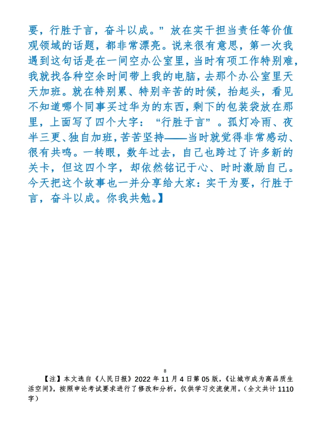 关于文章:抄写文章来源于人民日报,但每篇文章我都根据申论考试要求进行了修改,主要集中在四个方面:一是重写或修改开头、结尾;二是统一段首句句式结构;三是调整段落字数,使文章结构更均衡;四是简化复杂长难句,使之更具可模仿性。每篇文章修改幅度不同,无论修改多少,都是基于申论考试要求,毫无对人民日报文章品评之意。(此处致敬人民日报)