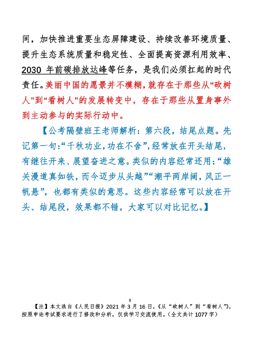 如何抄写:每天的抄写文章以图片形式发在“公考隔壁班王老师”账号,红色字是重点句和结构句,黑色字是正文,蓝色字是解析,大家抄写时不必抄蓝色字。建议先通读全文(包括蓝色解析部分),做到心中有数再开始抄写,效果会更好。