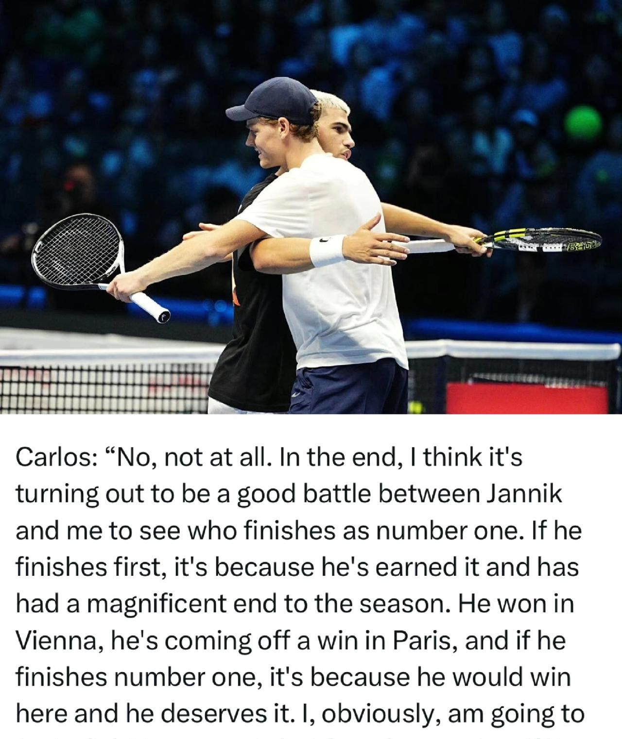阿卡和辛纳“争”年终世一奖杯,真是太可爱了! 事实上,可不就是这两个atp的双子星在争年终第一吗? 对于谁能夺冠,阿卡表现得很豁达。 他说:如果辛纳夺冠,我不会失望,他配得上这个冠军,但我会努力阻止这件事发生。 atp年终总决赛已经开赛,谁能捧杯?让我们拭目以待吧! #新锐创作者成长计划#