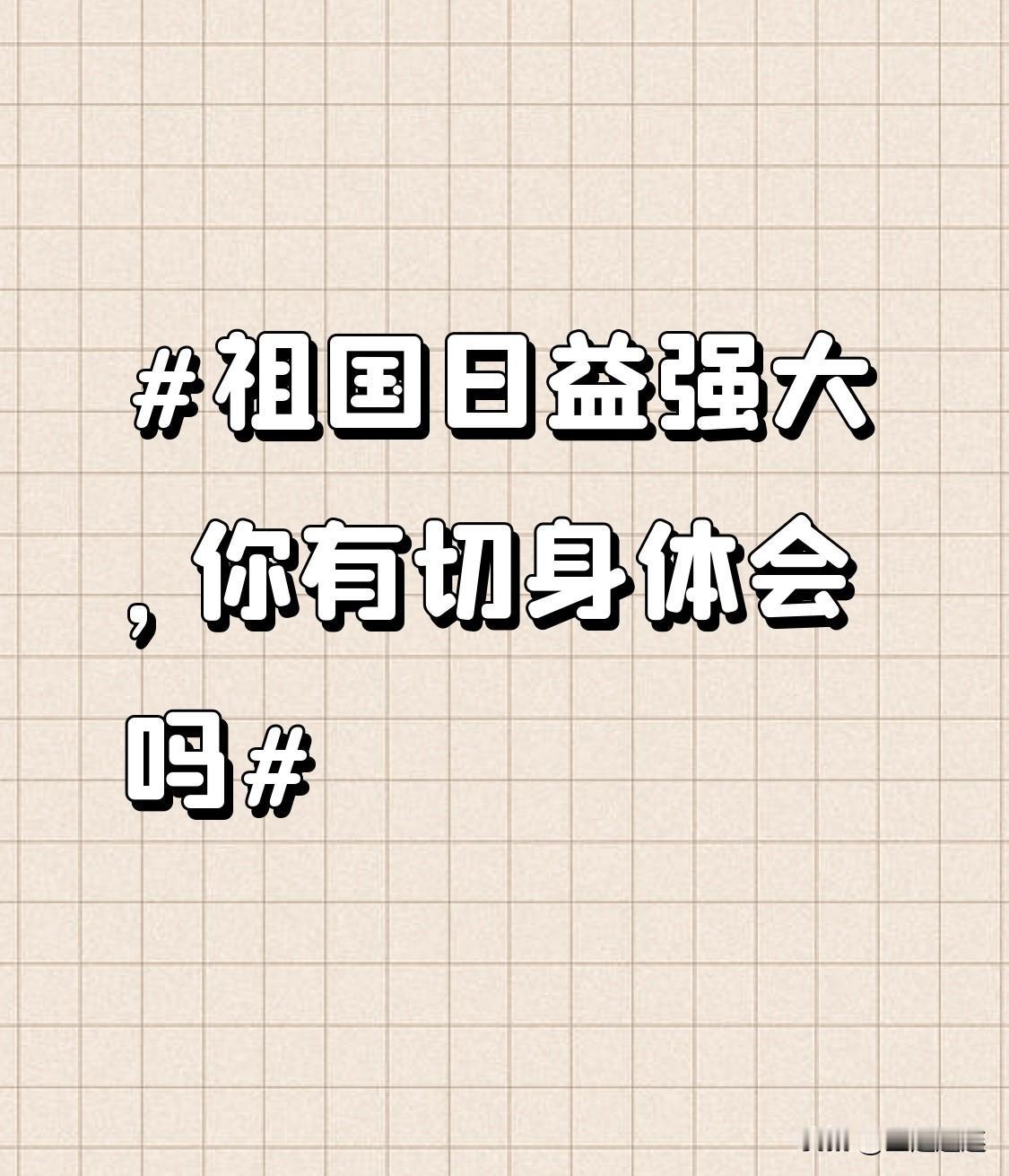 祖国日益强大,我深有体会。就像台湾退役少校吕礼诗,在长春航空展看到百余型现役和退役装备,像歼 - 20首次静态展示,轰炸机编队通场,他感慨从前电影里幻想的高科技武器如今成了现实,这背后是强大工业制造和科研人员的付出。 我自己在看2021年北京冬奥会开幕式时,五光十色烟花与精彩表演,让我感受到民族凝聚力。这些年,高铁飞速、航天辉煌、人工智能崛起、文化产业繁荣,中国在国际舞台声音也愈发响亮。祖国强大不仅是经济腾飞,更是文化自信和科技发展,这让我满是自豪。 国之繁荣,盛世鼎力,我的国,我的家 (^∀^)ノシ