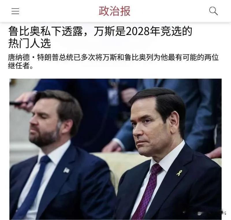美国国务卿卢比奥表示,如果副总统 JD Vance 决定参加 2028 年总统竞选,他将支持他。 此前,特朗普曾表示,万斯和卢比奥都是他可能的继任者。 万斯本人也强调,他们之间“不存在竞争”,而且他们是“政府里最好的朋友”——Politico报道