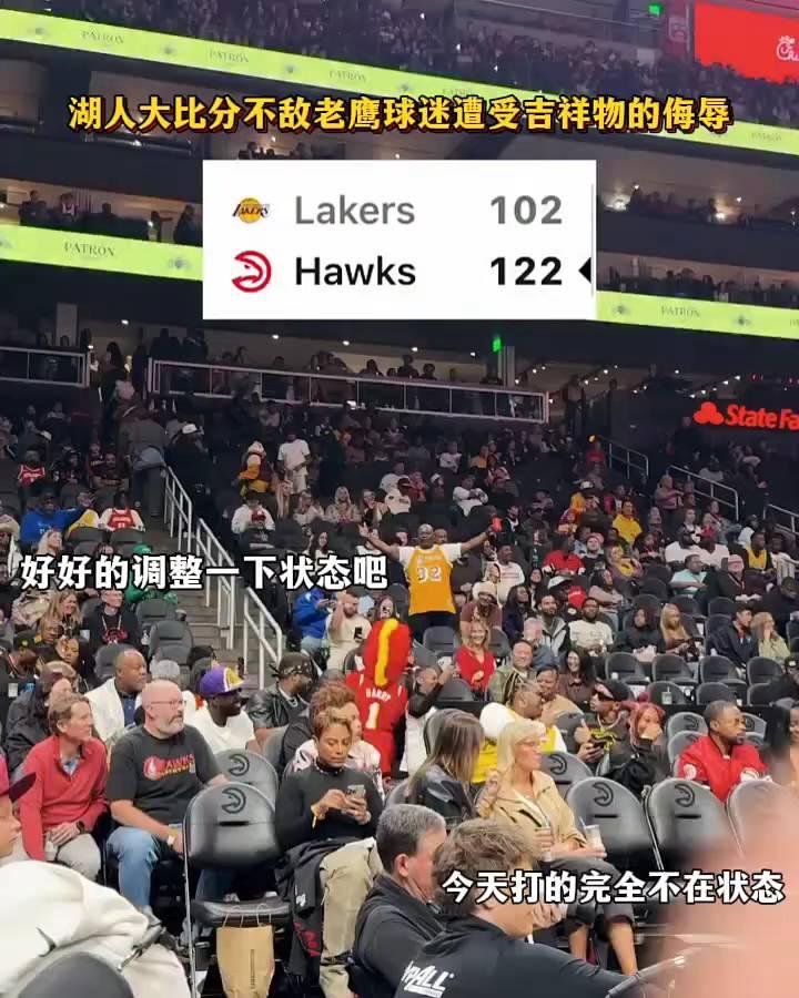 湖人大比分不敌老鹰球迷遭受吉祥物的侮辱。 好好的调整一下状态,今天打的完全不在状态。