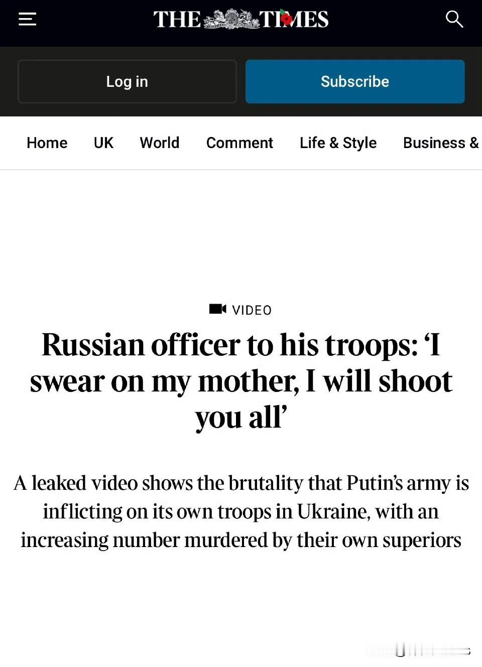 《泰晤士报》:俄国军官尤里·巴巴科夫对他的部队说: 「如果你不听从命令,拒绝履