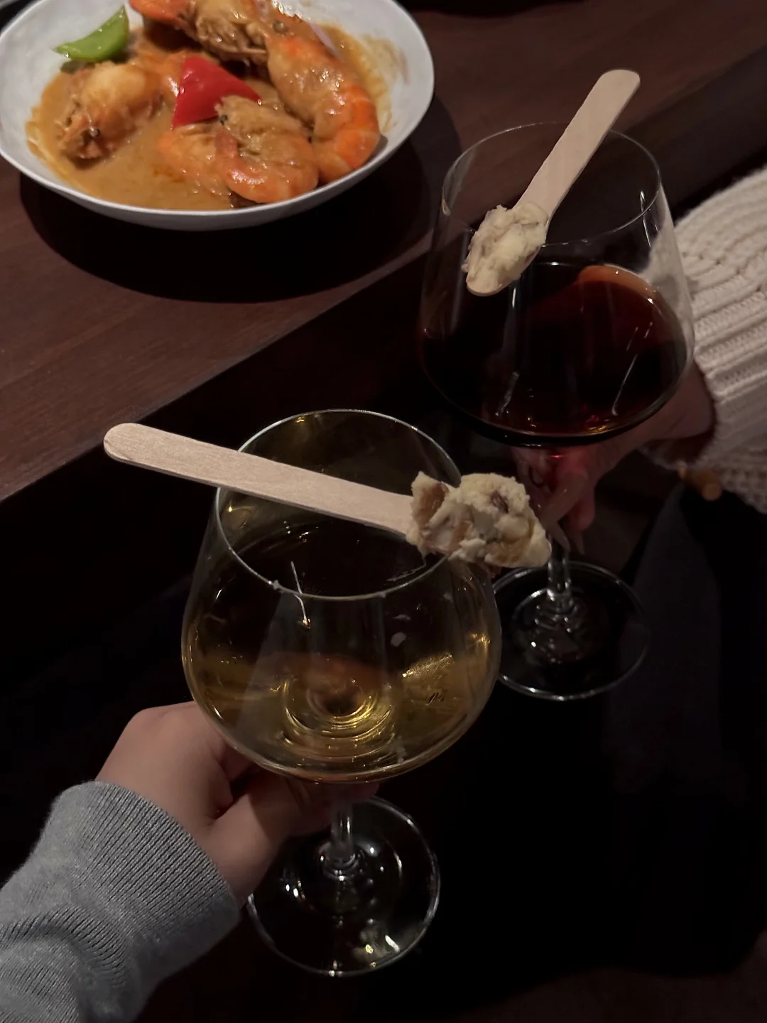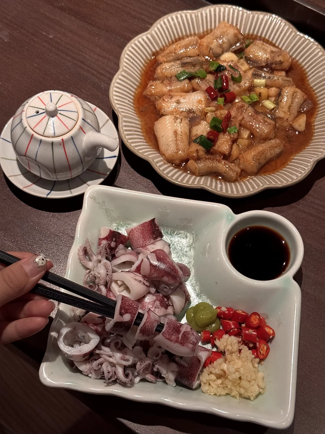 草莓夜芭菲!!提前过上圣诞了!!海盐饼干+酸奶油+草莓果酱+草莓果肉+米菲软曲奇!!一口下去惊为天人的好吃。。 菜品盲点!!白切笔管鱿鱼、蒜蓉贻贝、咖喱罗氏虾🦐一吃一个不吱声。。每个角落拍照都很出片,好适合跟朋友一二人食!