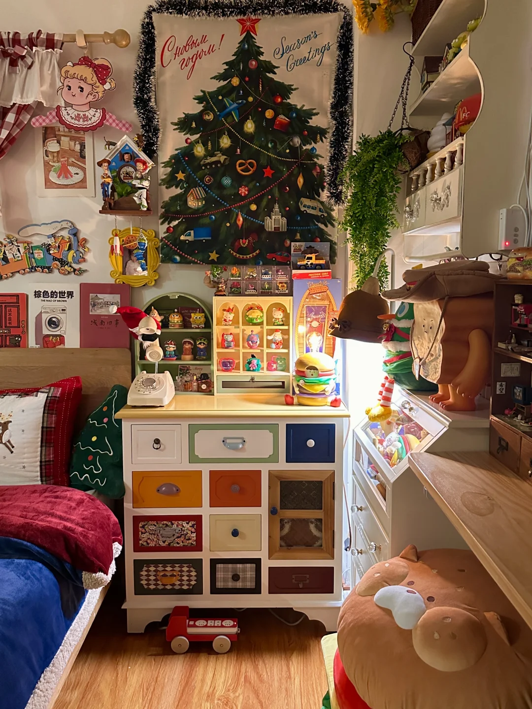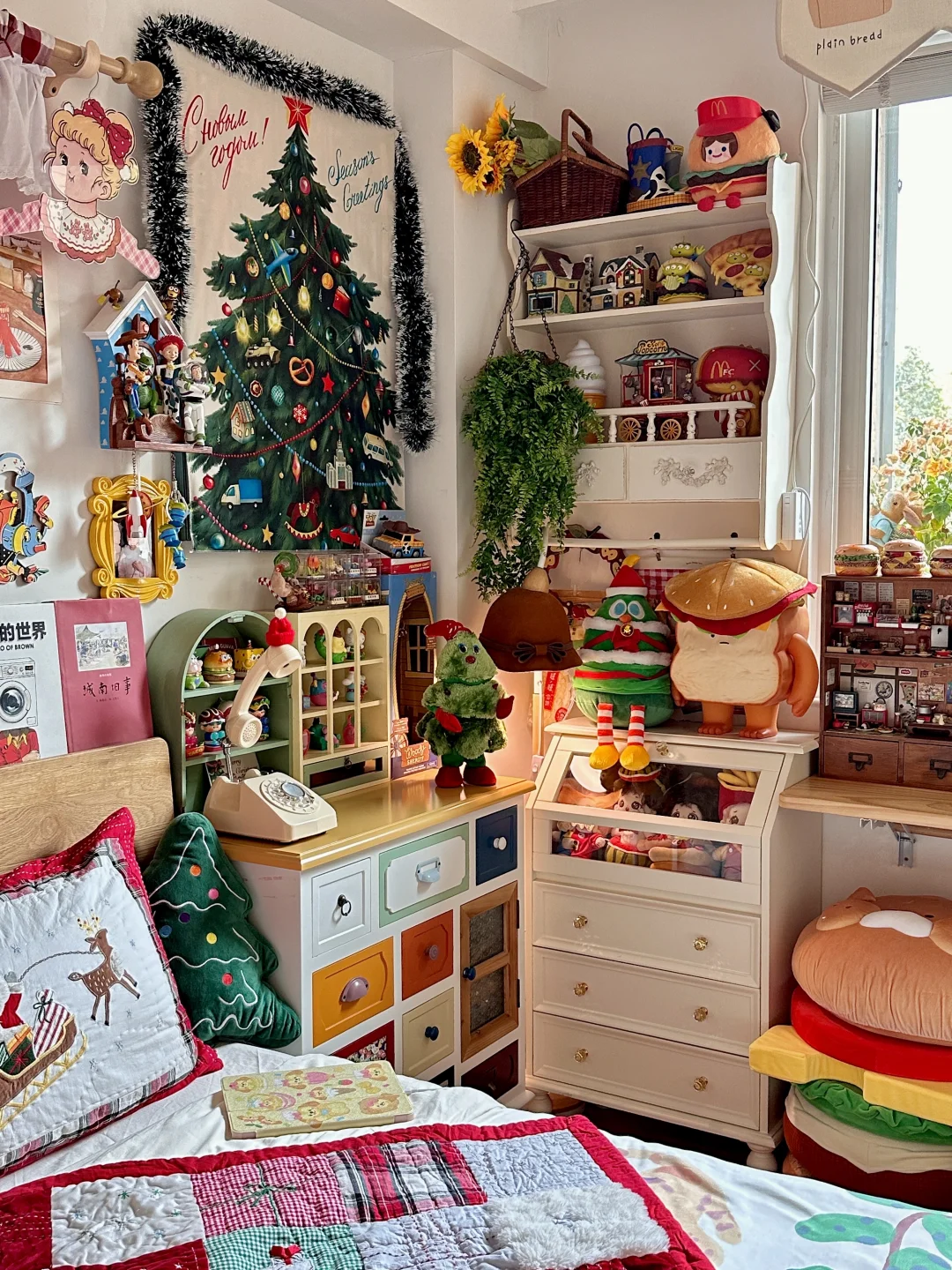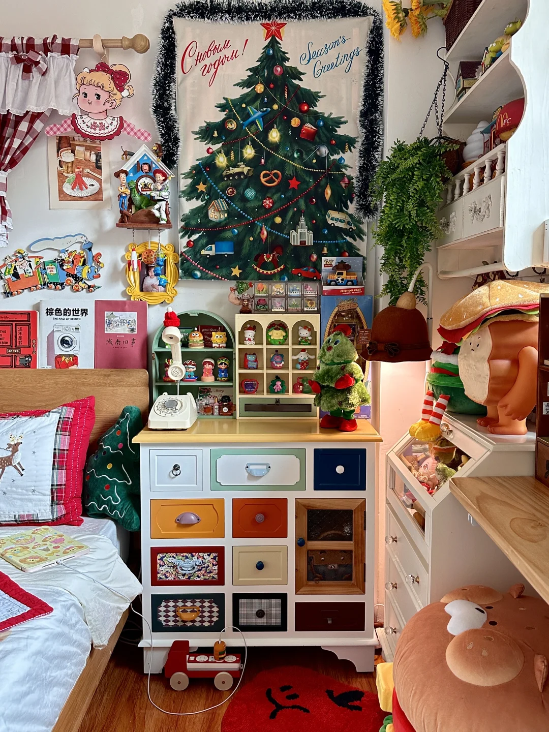 让我们穿越回2023年的圣诞节 把19平卧室布置成温馨的极繁杂货铺~