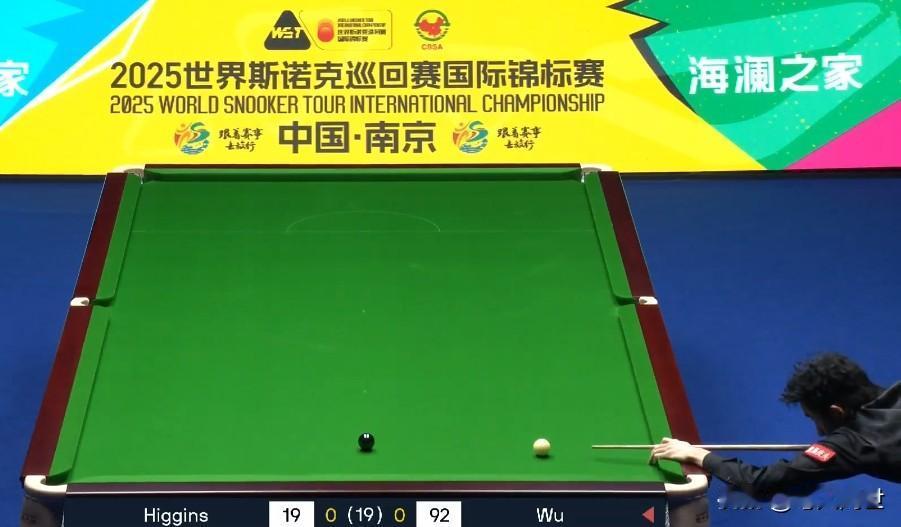 开门红!吴宜泽拿下至关重要的第一局。 2025斯诺克国锦赛,约翰希金斯vs吴宜泽的决赛正在进行中。比赛开局,希金斯率先上手得19分,在随后的攻防互换中,吴宜泽两度上手,并以99:19拿下稳定信心的关键一局。 今天的希金斯,表现似乎有点想速战速决的战术意图,而吴宜泽在攻与守之间的沉稳,依然展示足够的耐心和自信。只要抓住希金斯急于求成的心态,耐心与他周旋,吴宜泽胜率还是稍大的。