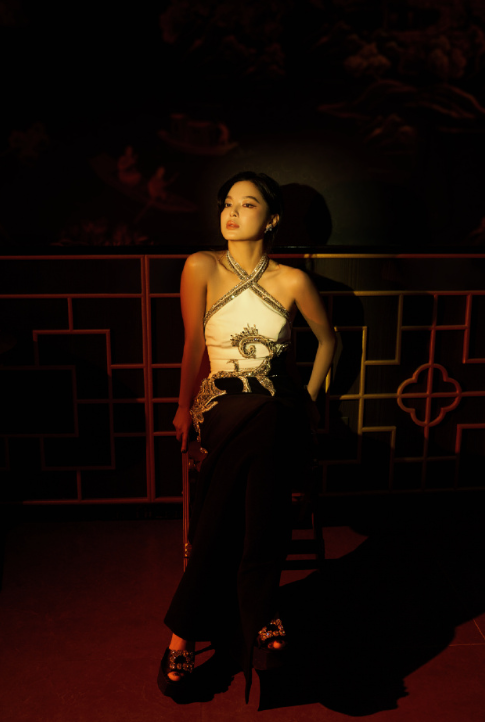 辛芷蕾的中式挂脖裙,超不错的,nice,很有气质!
