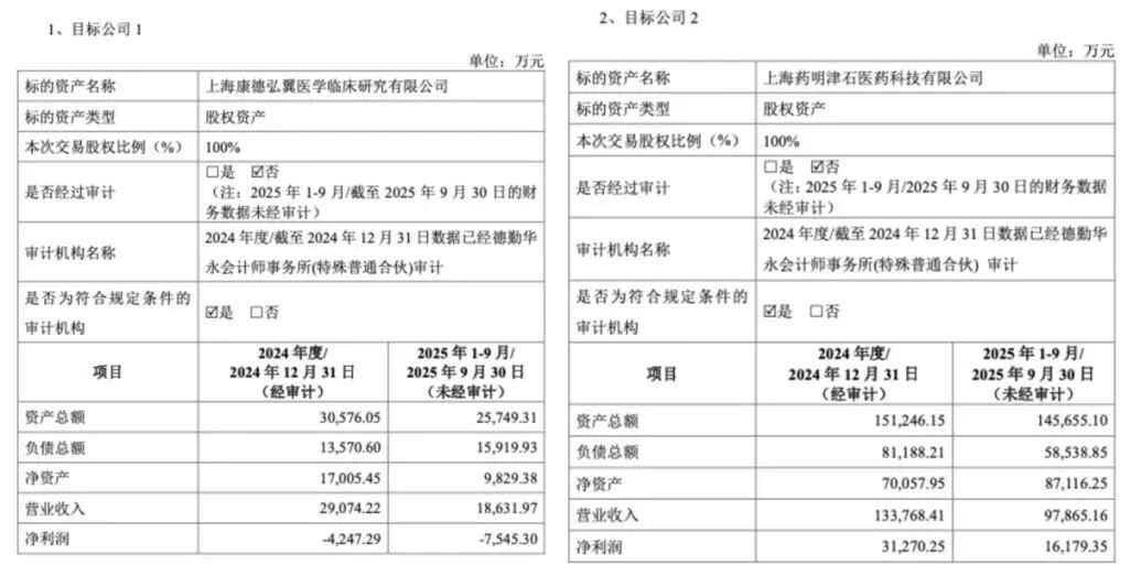 两家公司在2025年前三季度合计收入11.65亿元,占集团营收3.55%,合并净利润0.86亿元,占同期利润0.72%。其中,康德弘翼亏损7545万元,药明津石盈利1.62亿元。