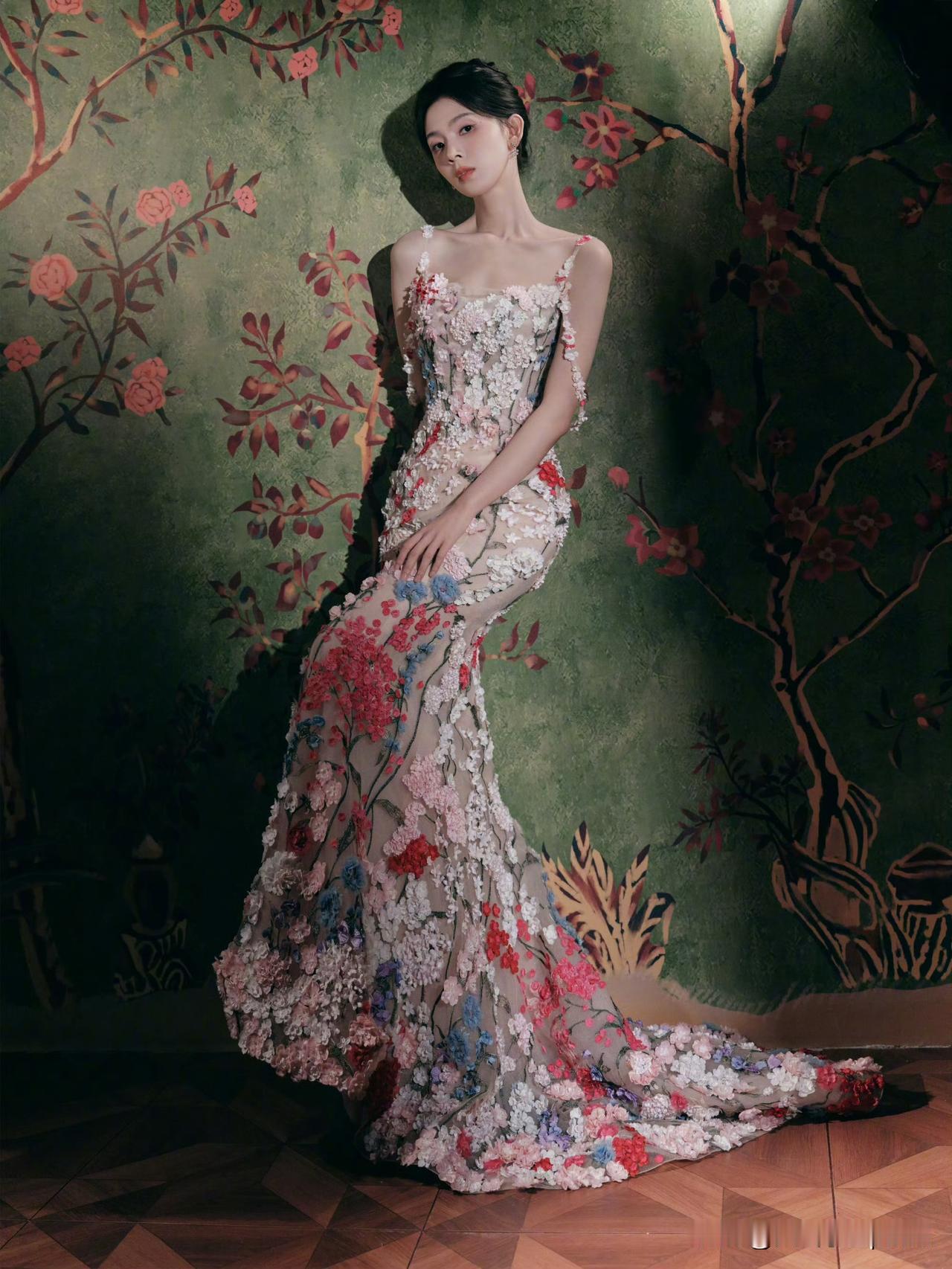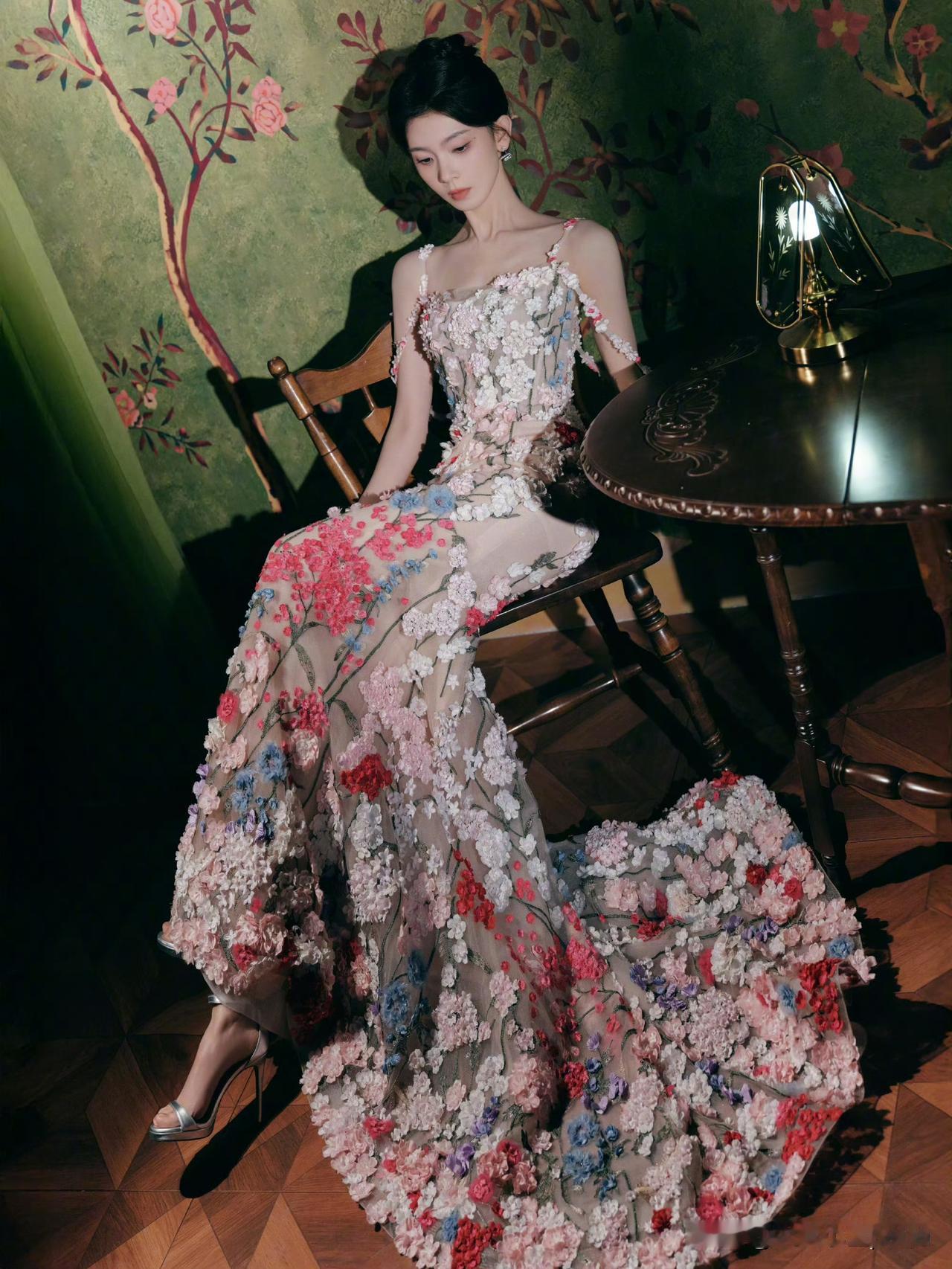 哇塞,陈瑶这套“西方桃”造型也太绝了吧! 简直是从童话里走出来的花仙子本仙~ 层层叠叠的薄纱缀满花朵,整个人像是把花朵穿在了身上,连光影都追着她跑! 走在红毯上根本是带了一整个移动花园,又浪漫又灵动,随便一眼都能让人心跳漏拍。 这身不仅把“上镜心”直接拉满,更是把仙气和甜度调到了满分档。 救命啊,这美貌攻击谁扛得住!