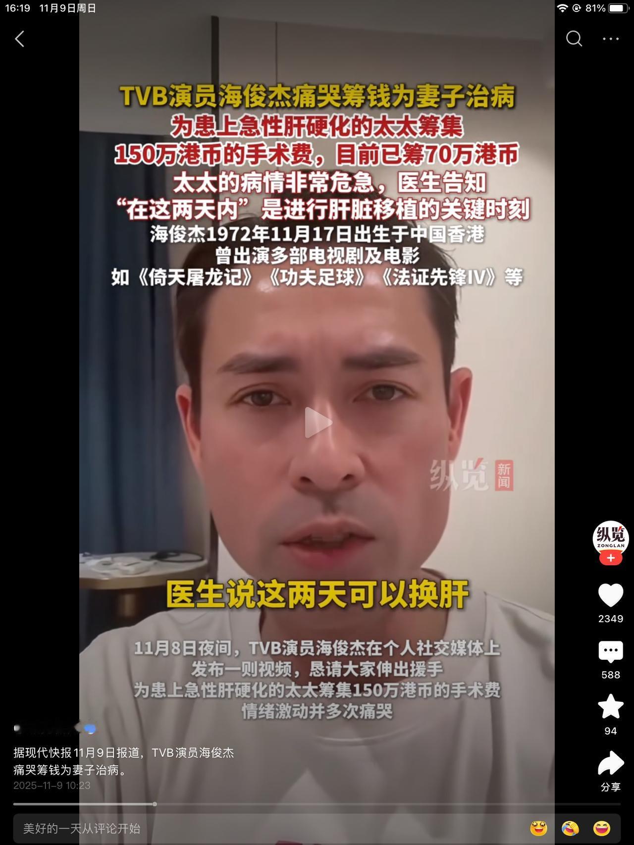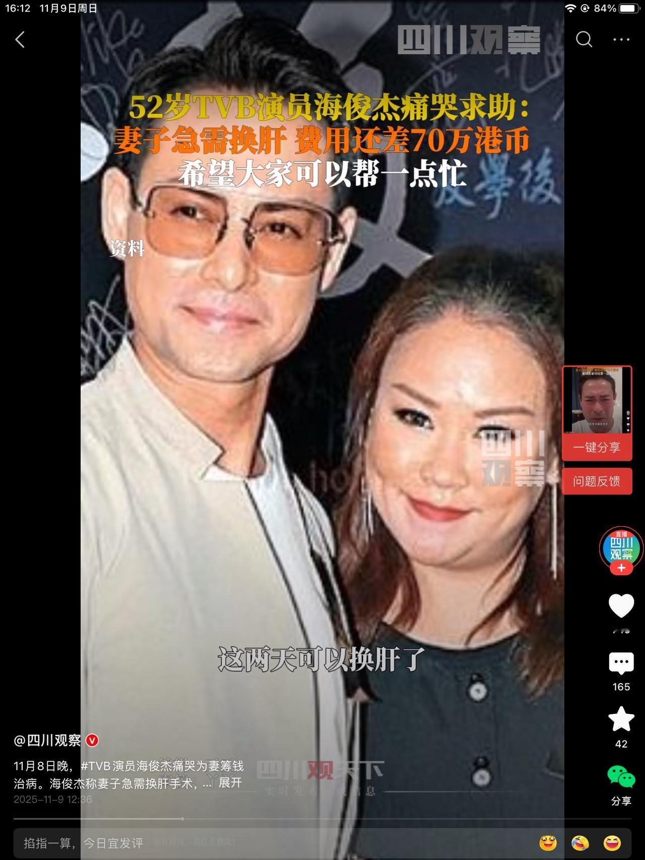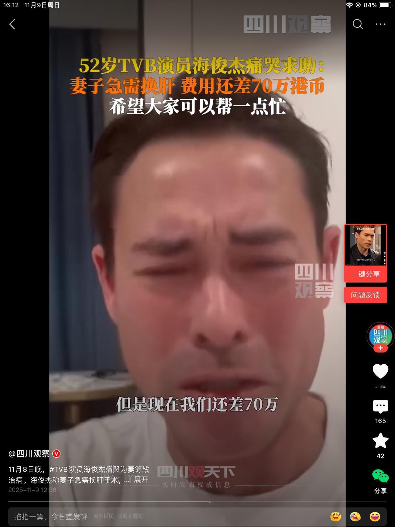 香港演员海俊杰为给妻子换肝,求助网友痛哭流涕。这位演员不太出名,演过什么电视剧我