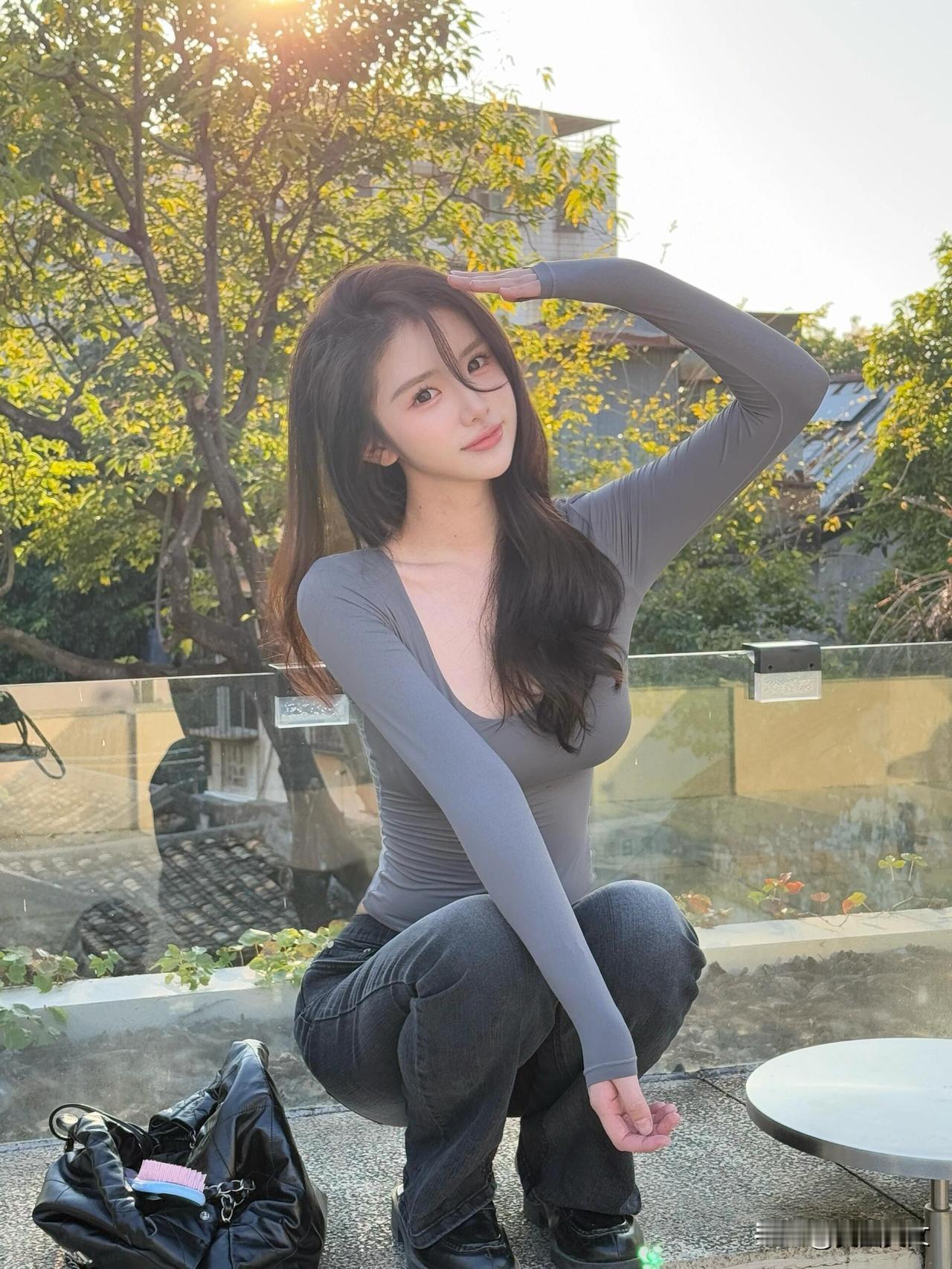 秋日森林中的时尚少女,棕色毛衣与牛仔裤的完美搭配,尽显自然与优雅的气息。